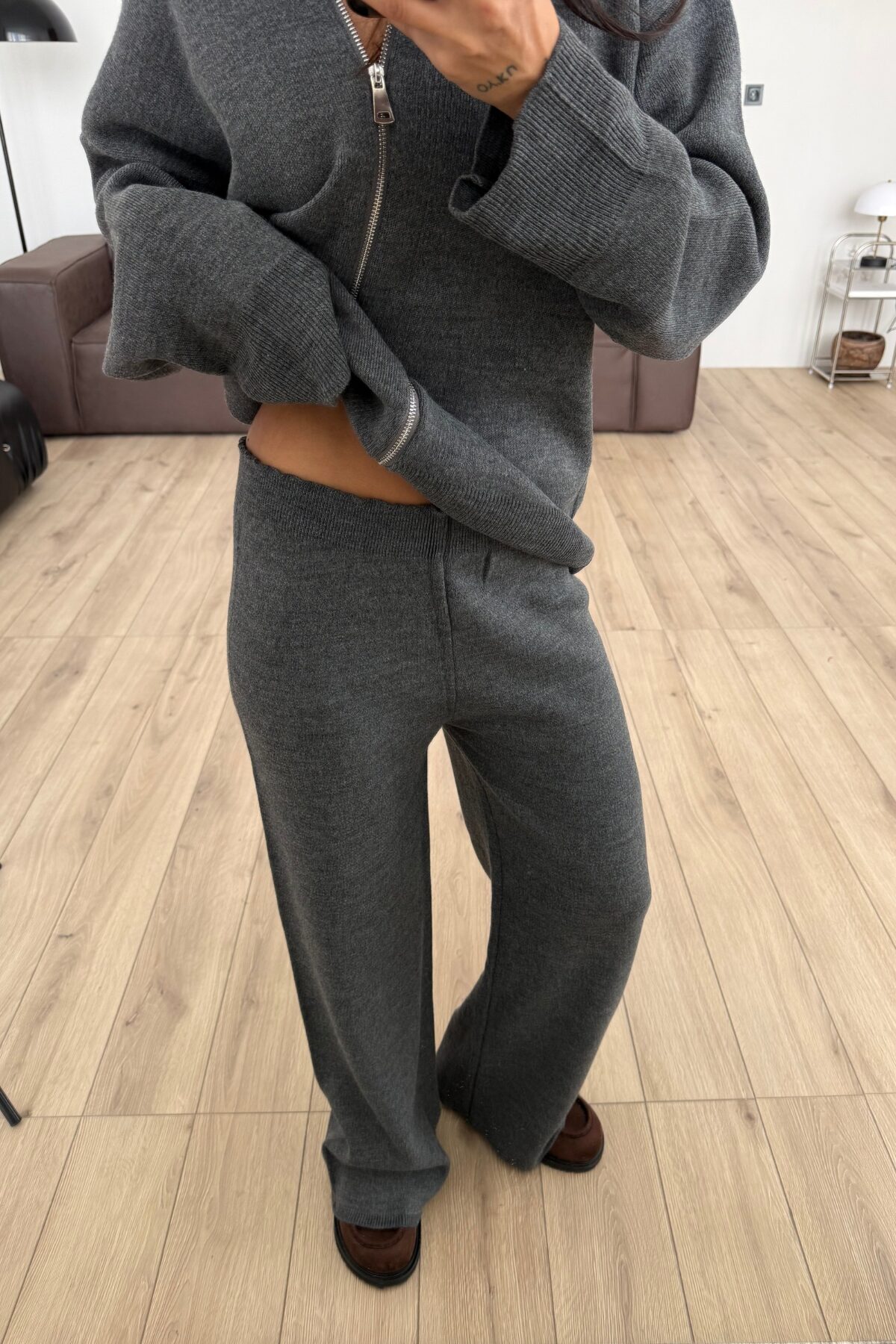 Kapşonlu Triko Hırka Pantolon Takım Antrasit