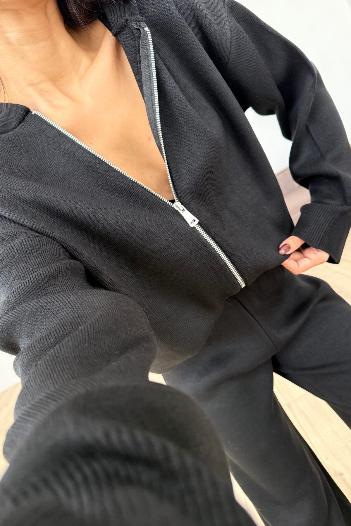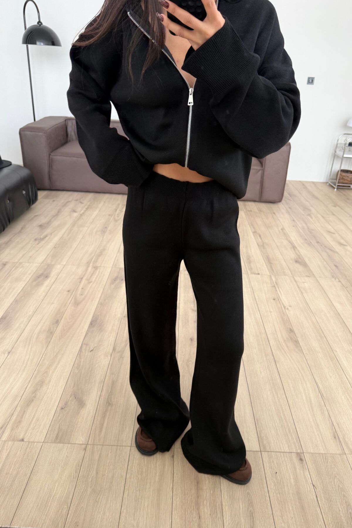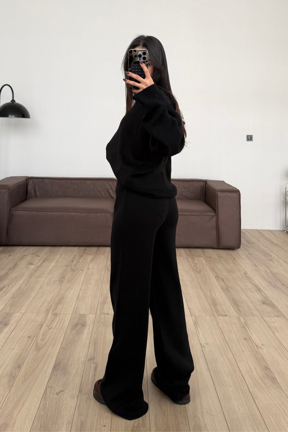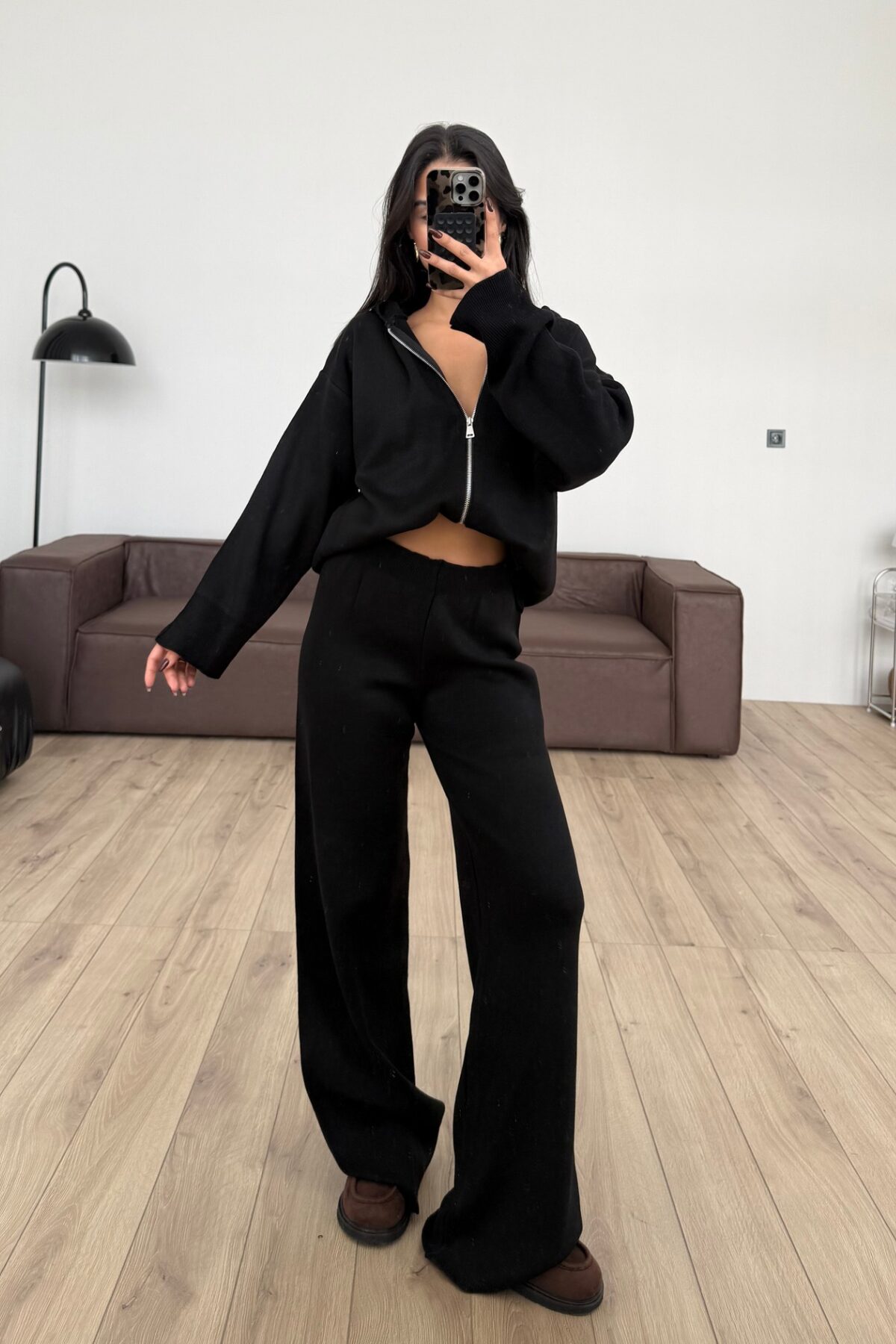 Kapşonlu Triko Hırka Pantolon Takım Siyah