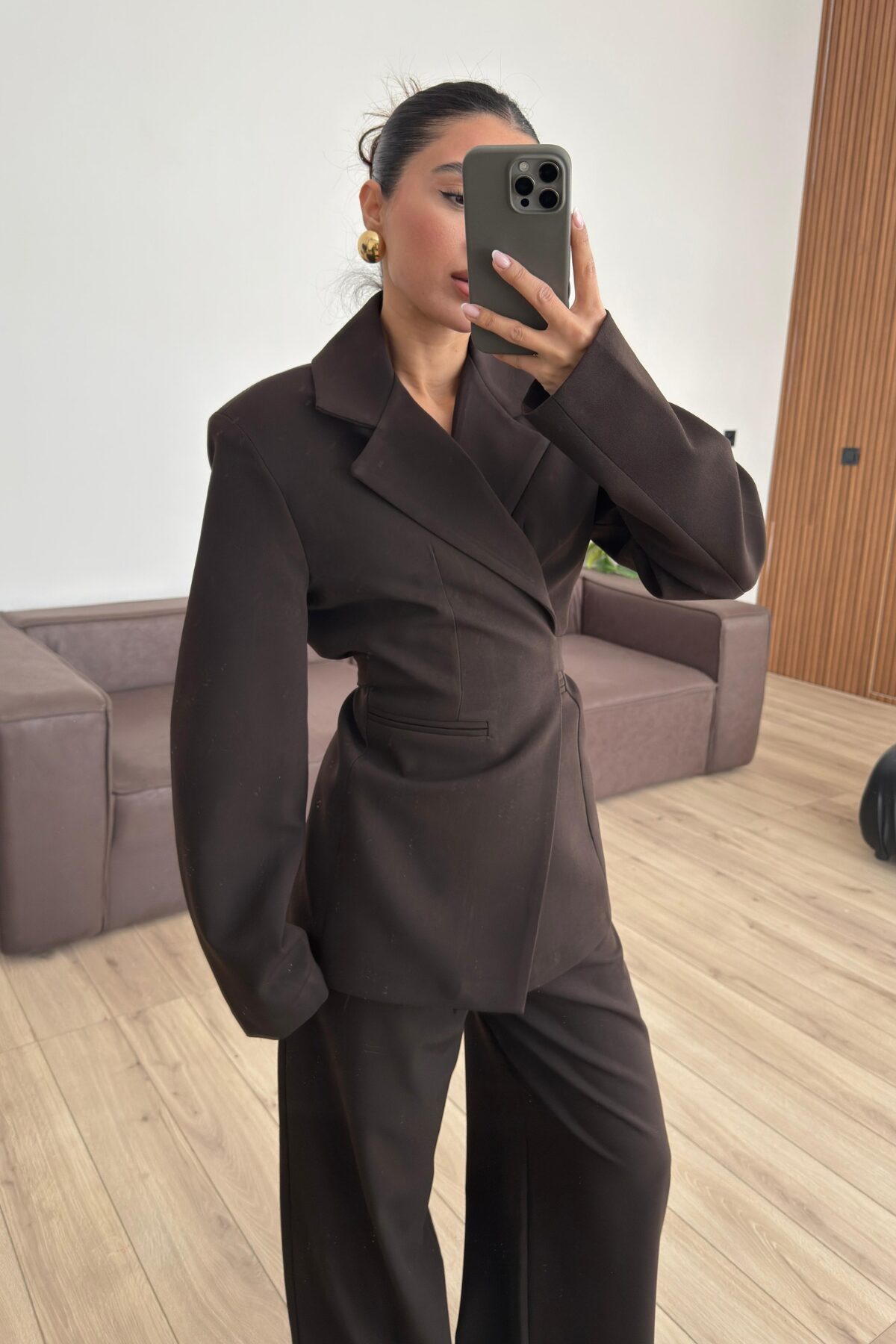 Loyd Beli Bağlamalı Pantolon Takım Kahverengi