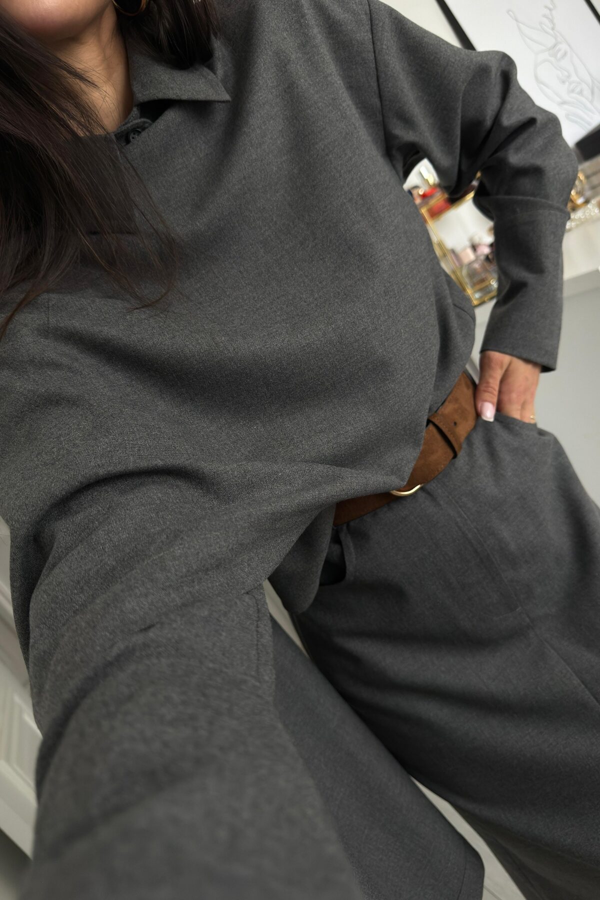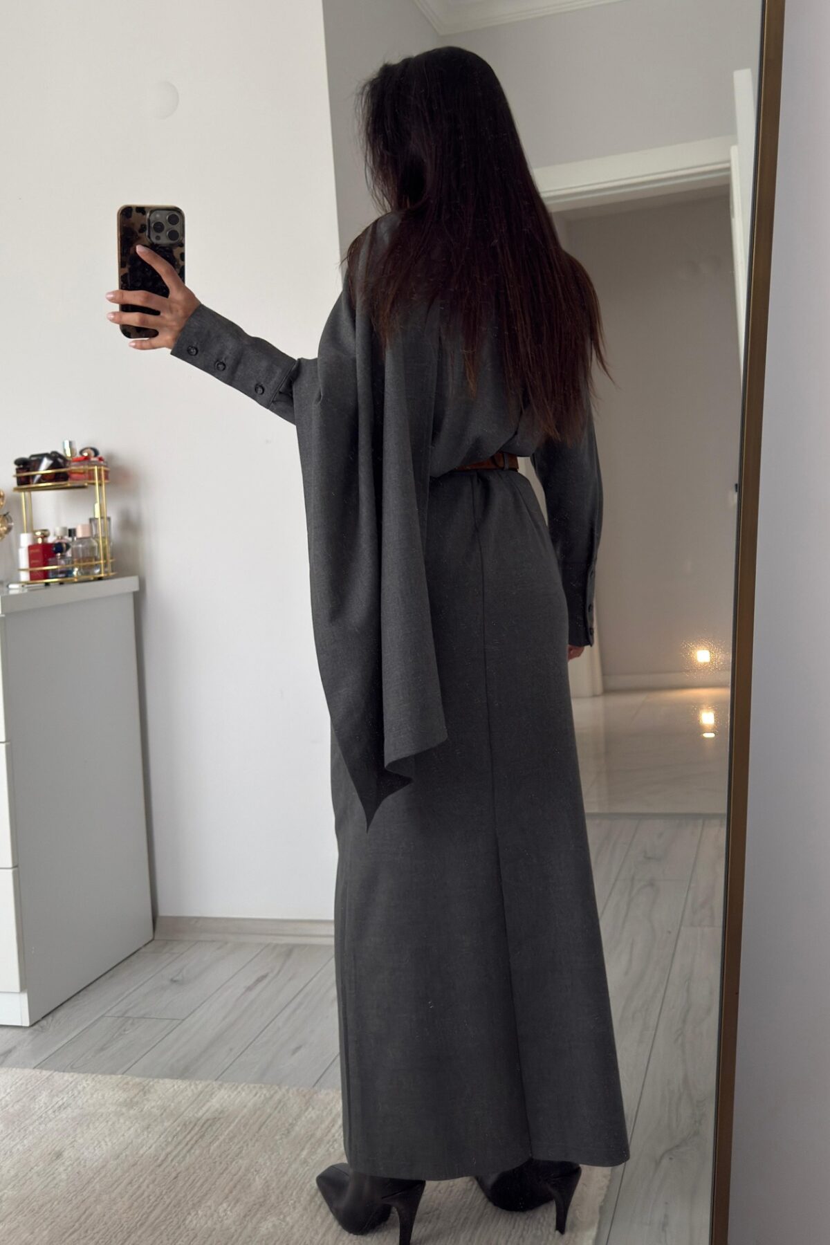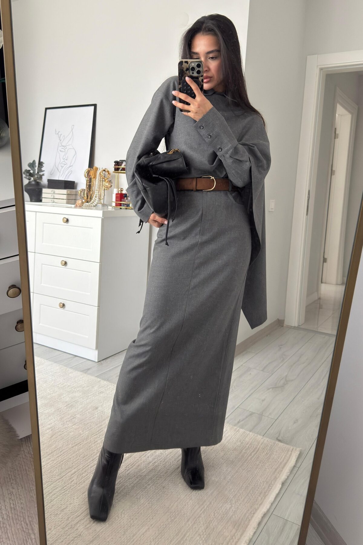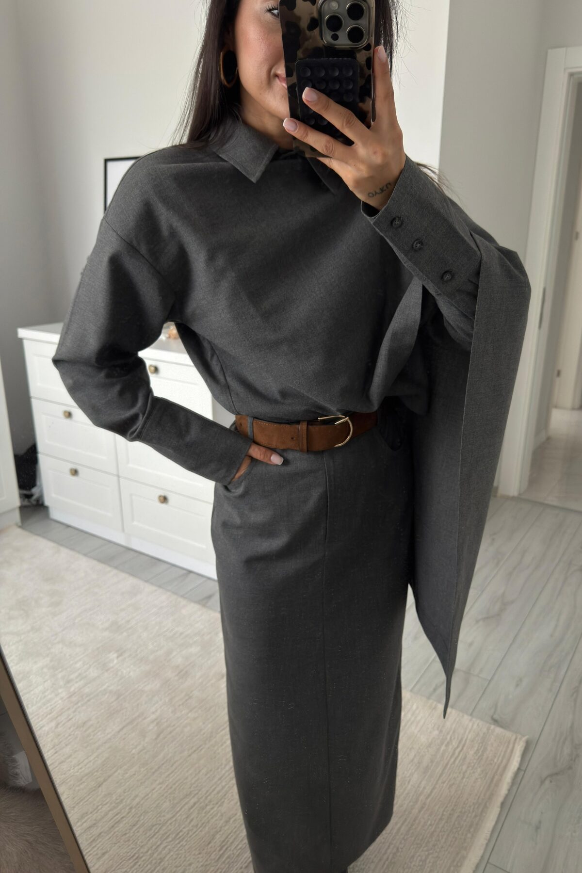 Manşet Kol Yakası Şallı Gömlek Etek Takım Antrasit