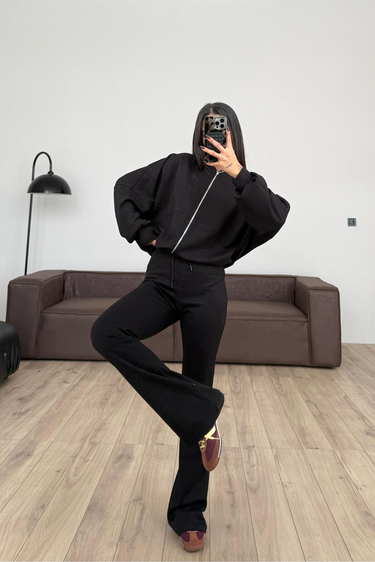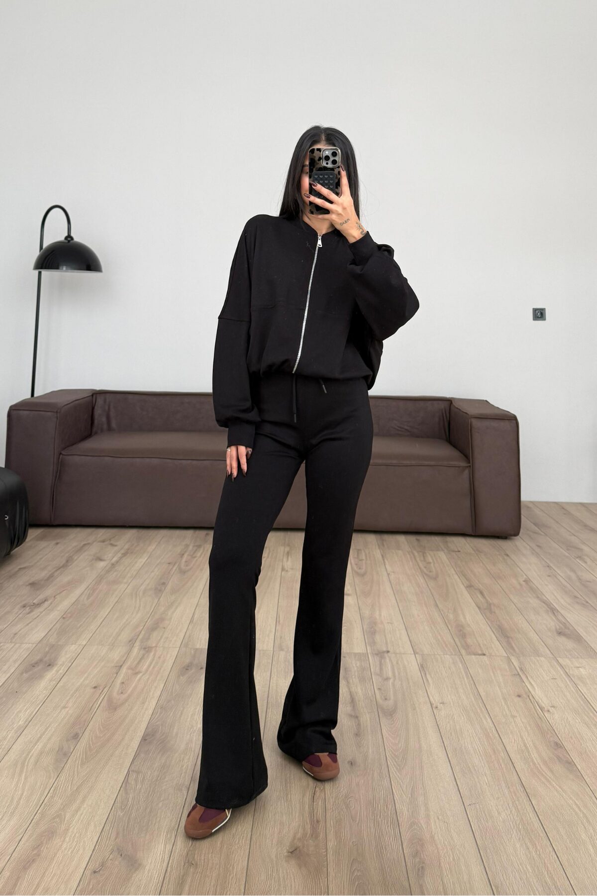 Modal İspanyol Paçalı Tayt Takım Siyah