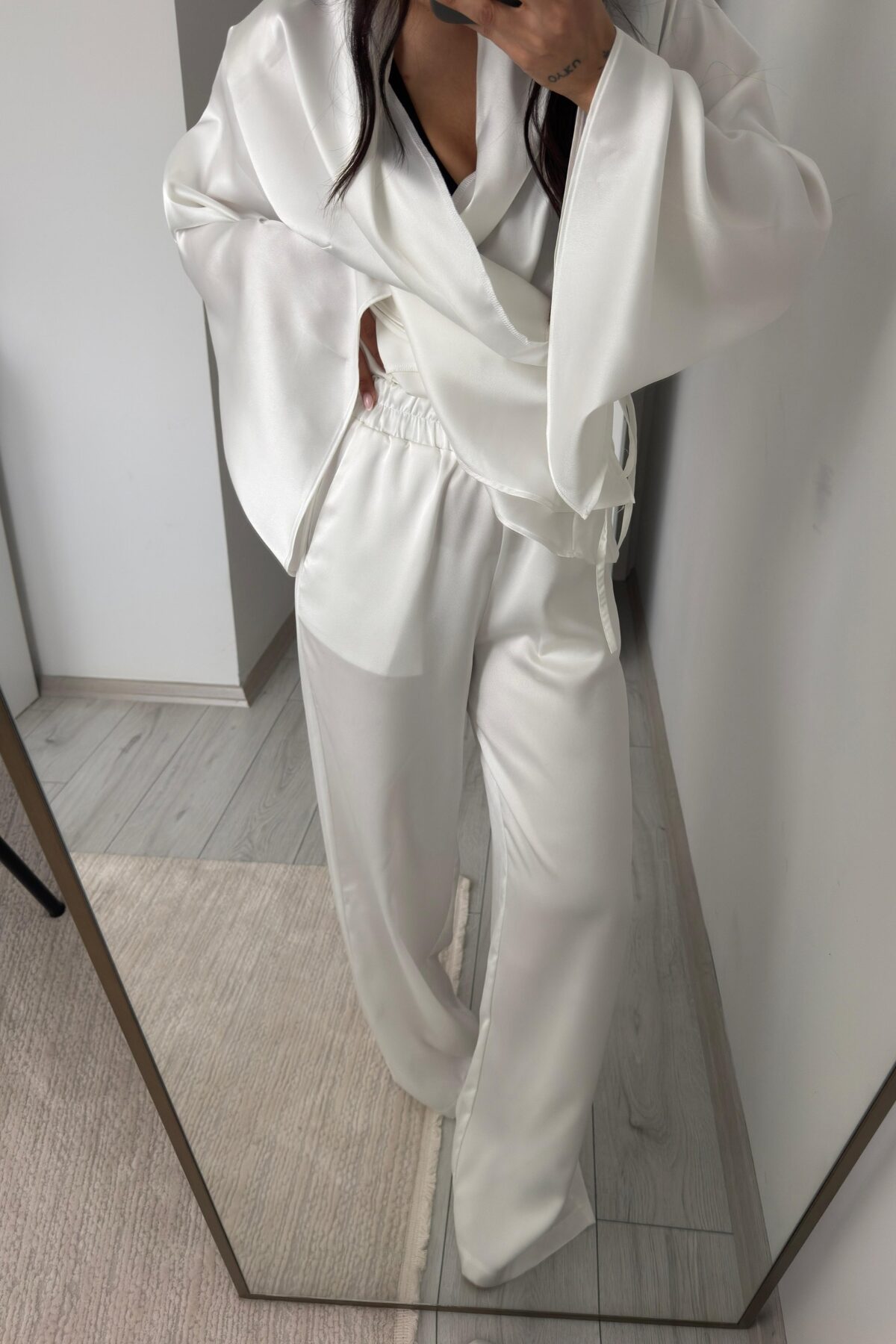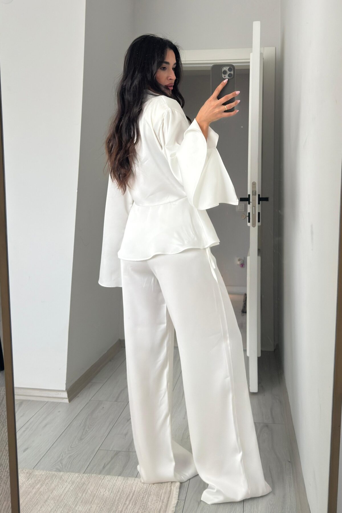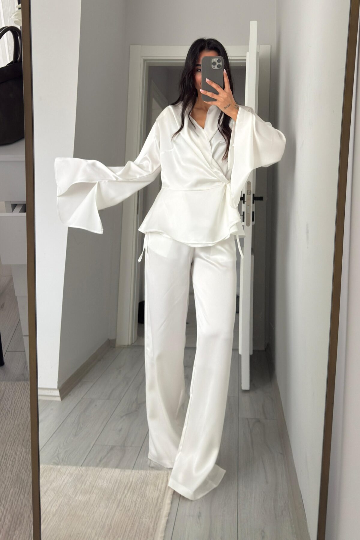 Monita Vatkalı Volanlı Saten Takım Ekru