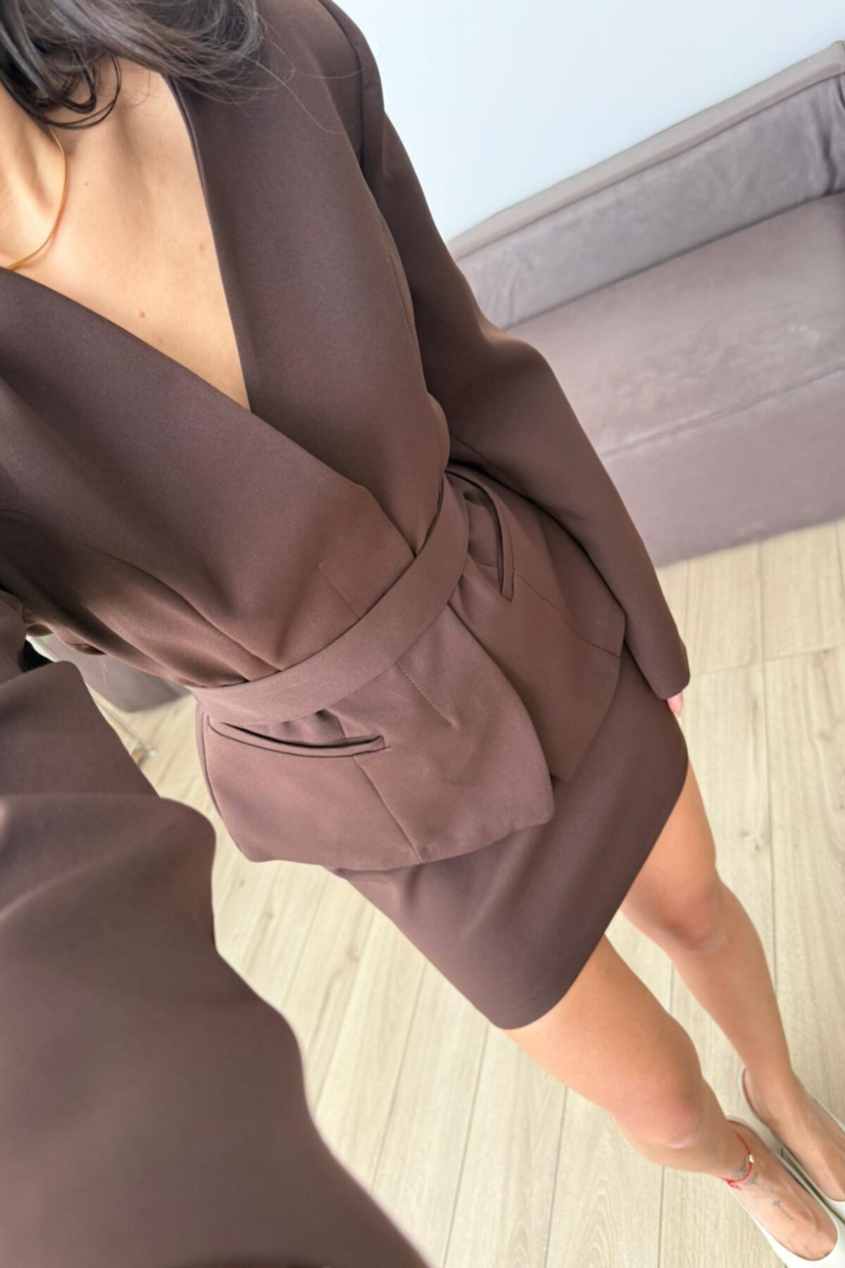 “Nesh Yakasız Ceket Mini Etek Takım Kahverengi” için yorum yapan ilk kişi siz olun