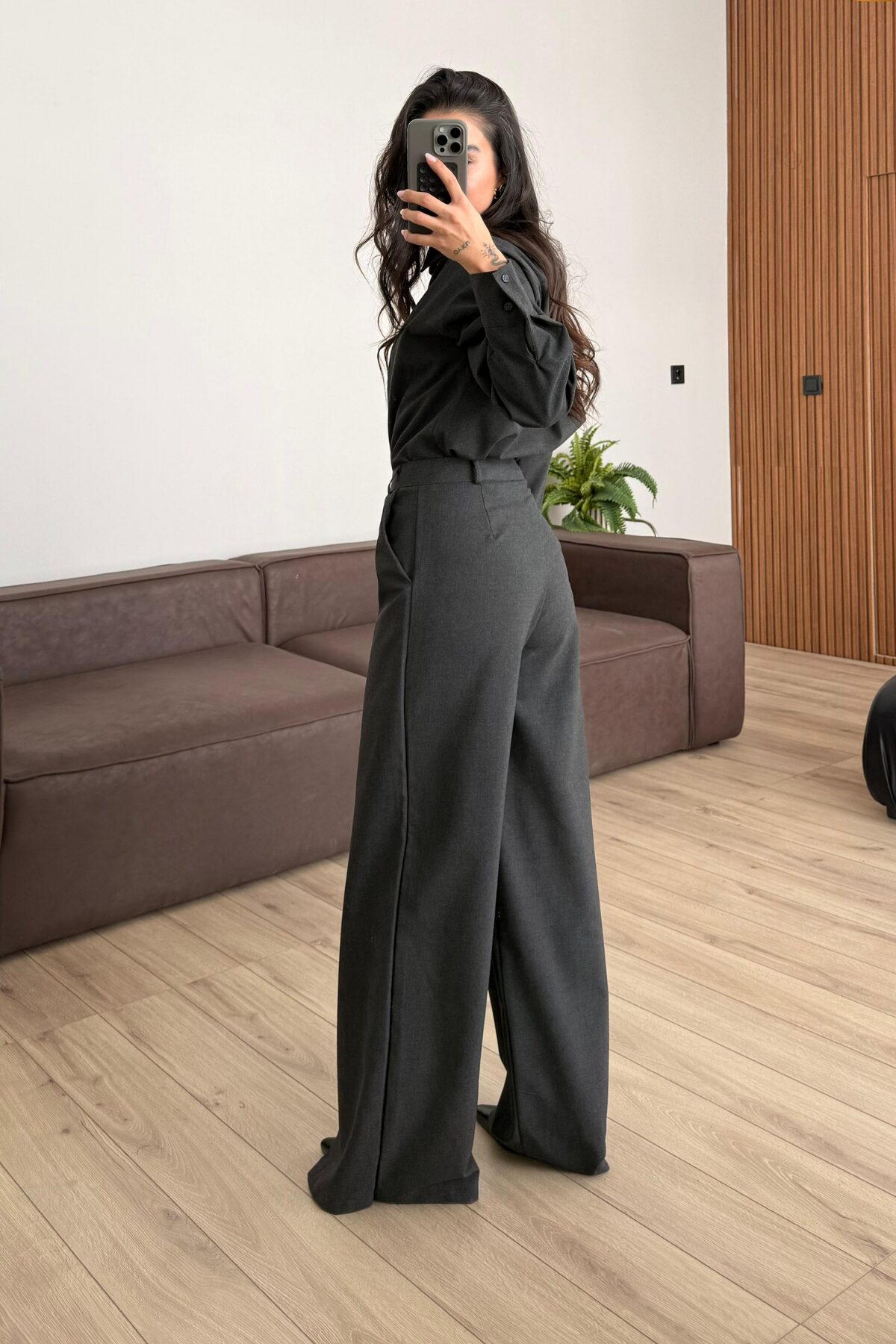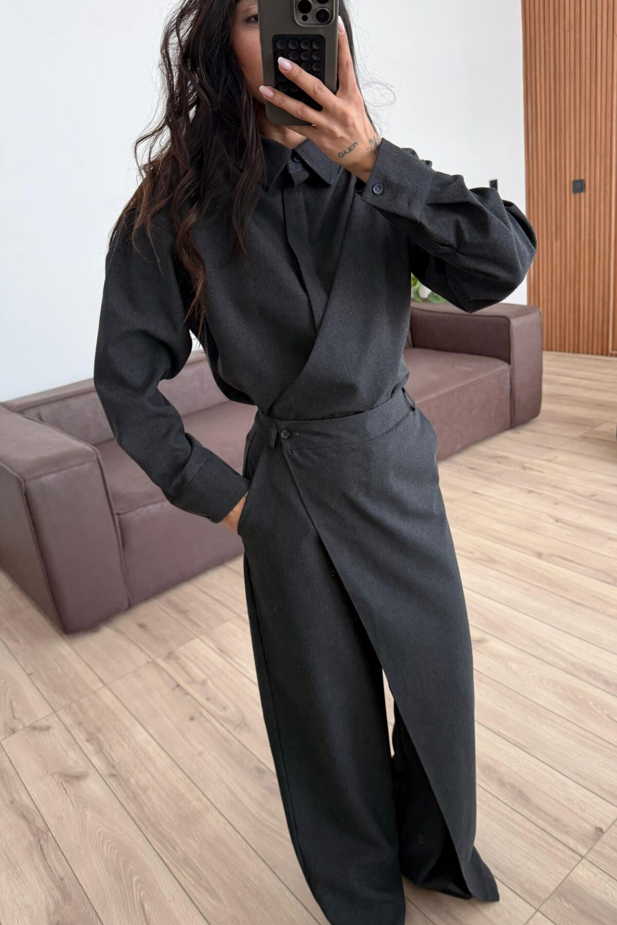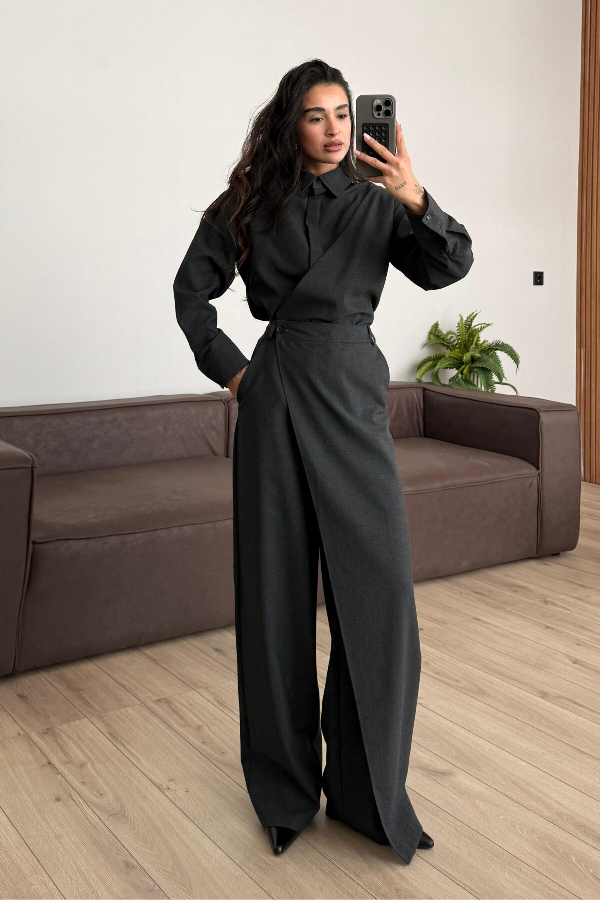 Önü Çapraz Detaylı Gömlek Pantolon Takım Antrasit