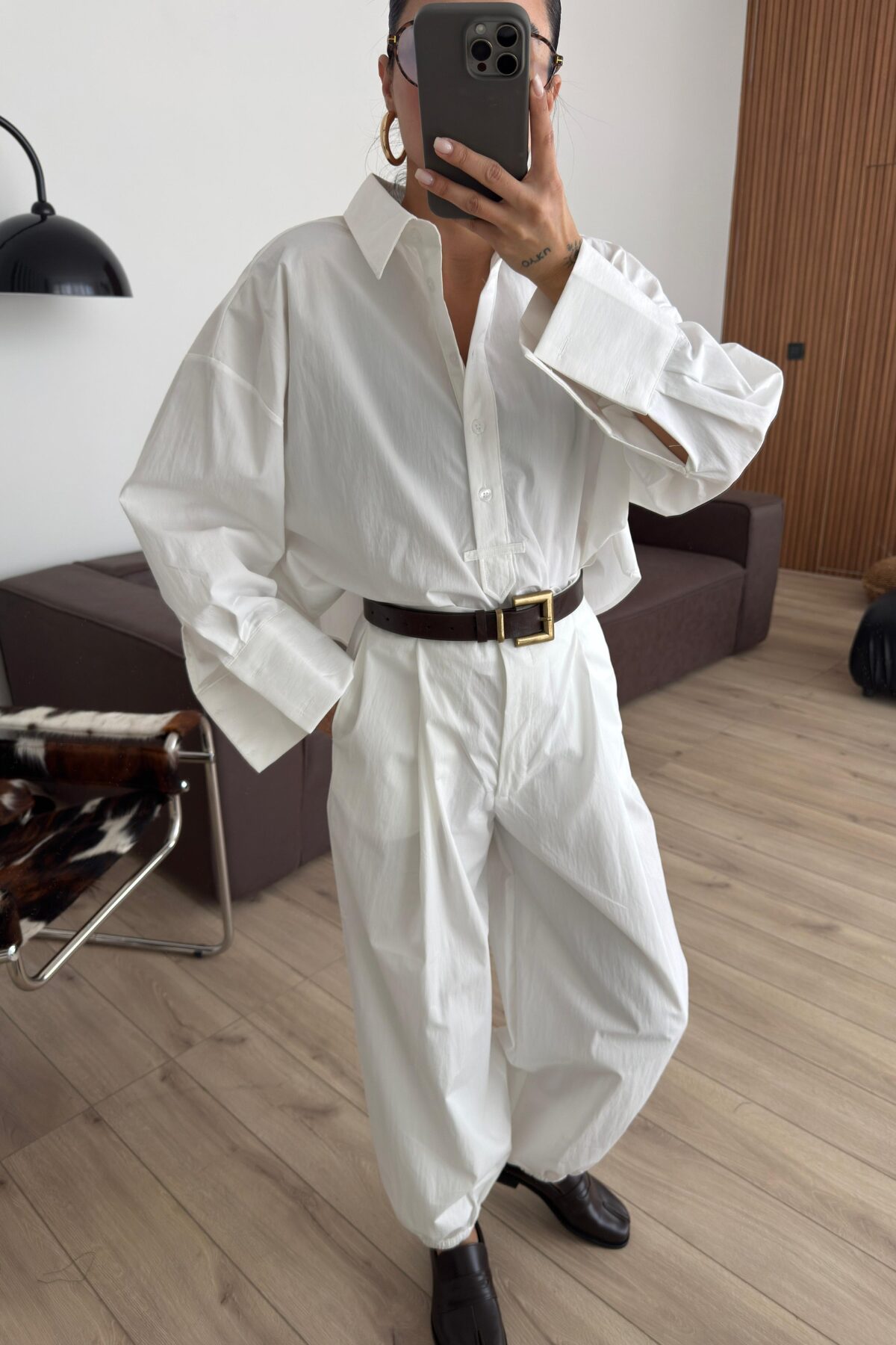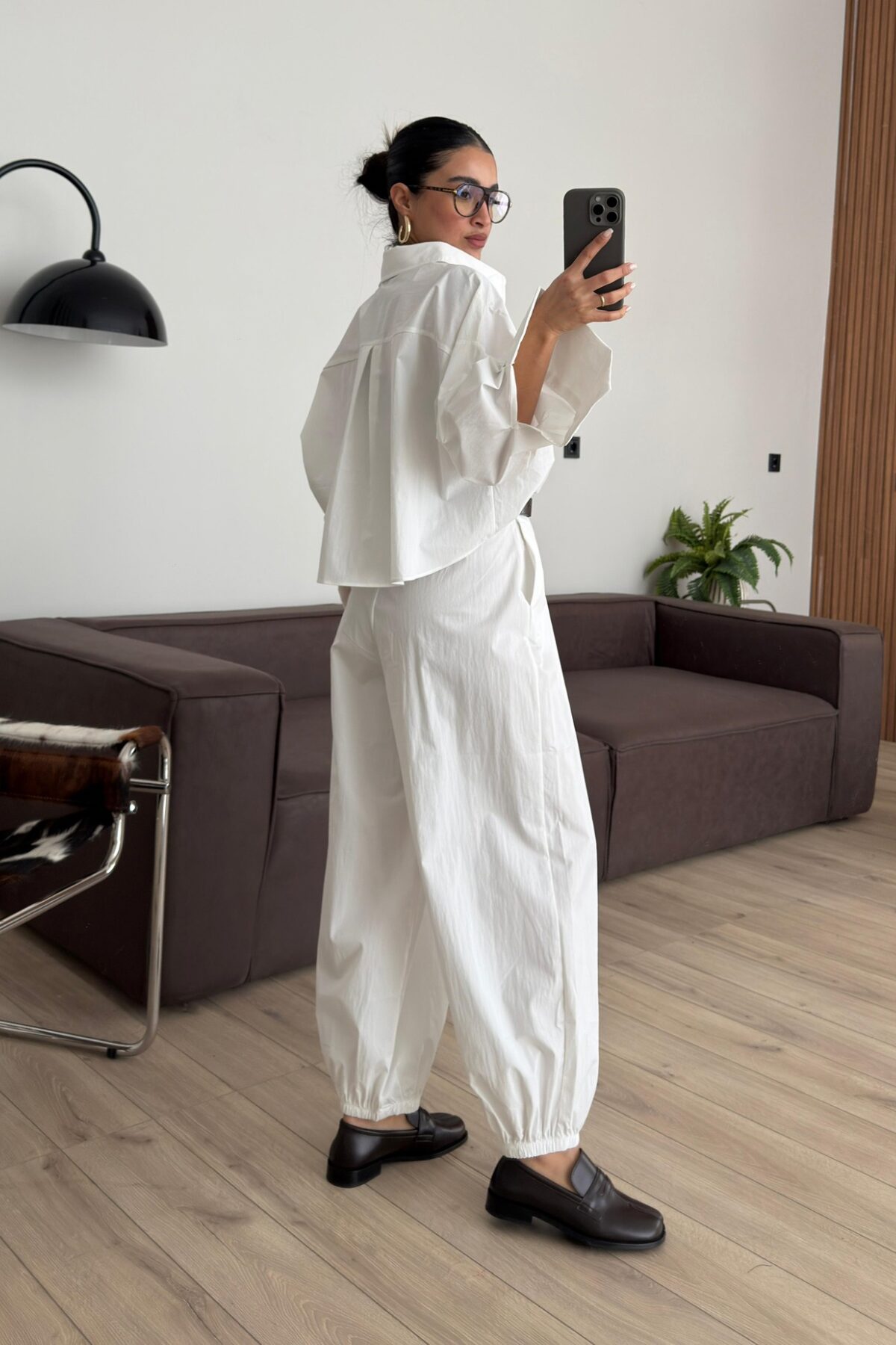 Paçası Lastikli Pantolon Gömlek Takım Beyaz