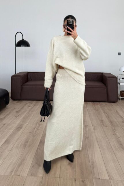 Madonna Triko Etek Takım Bej