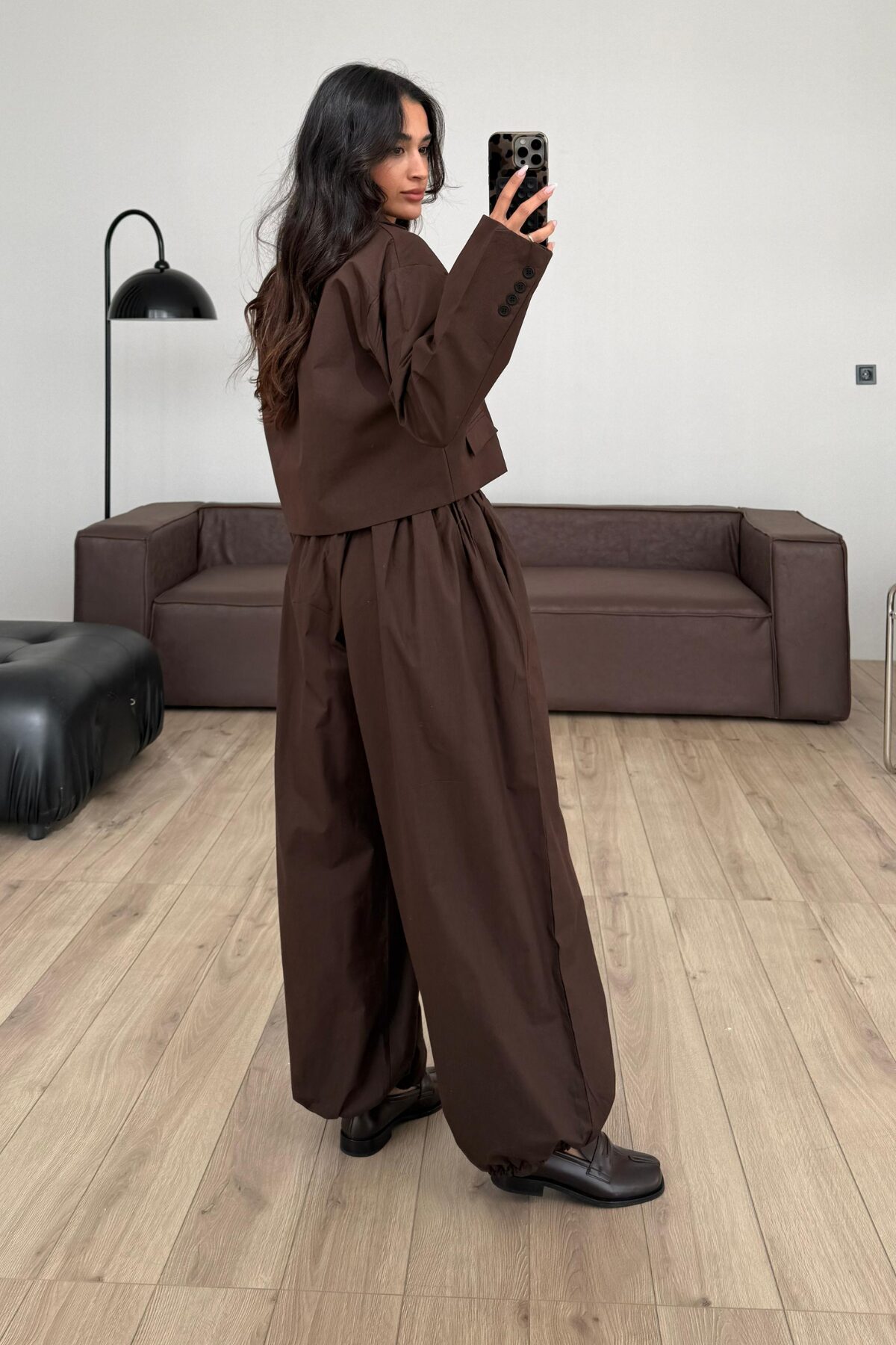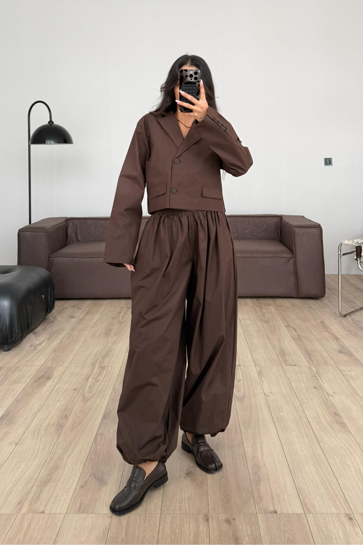 Pamel Ceket Balon Pantolon Takım Kahverengi