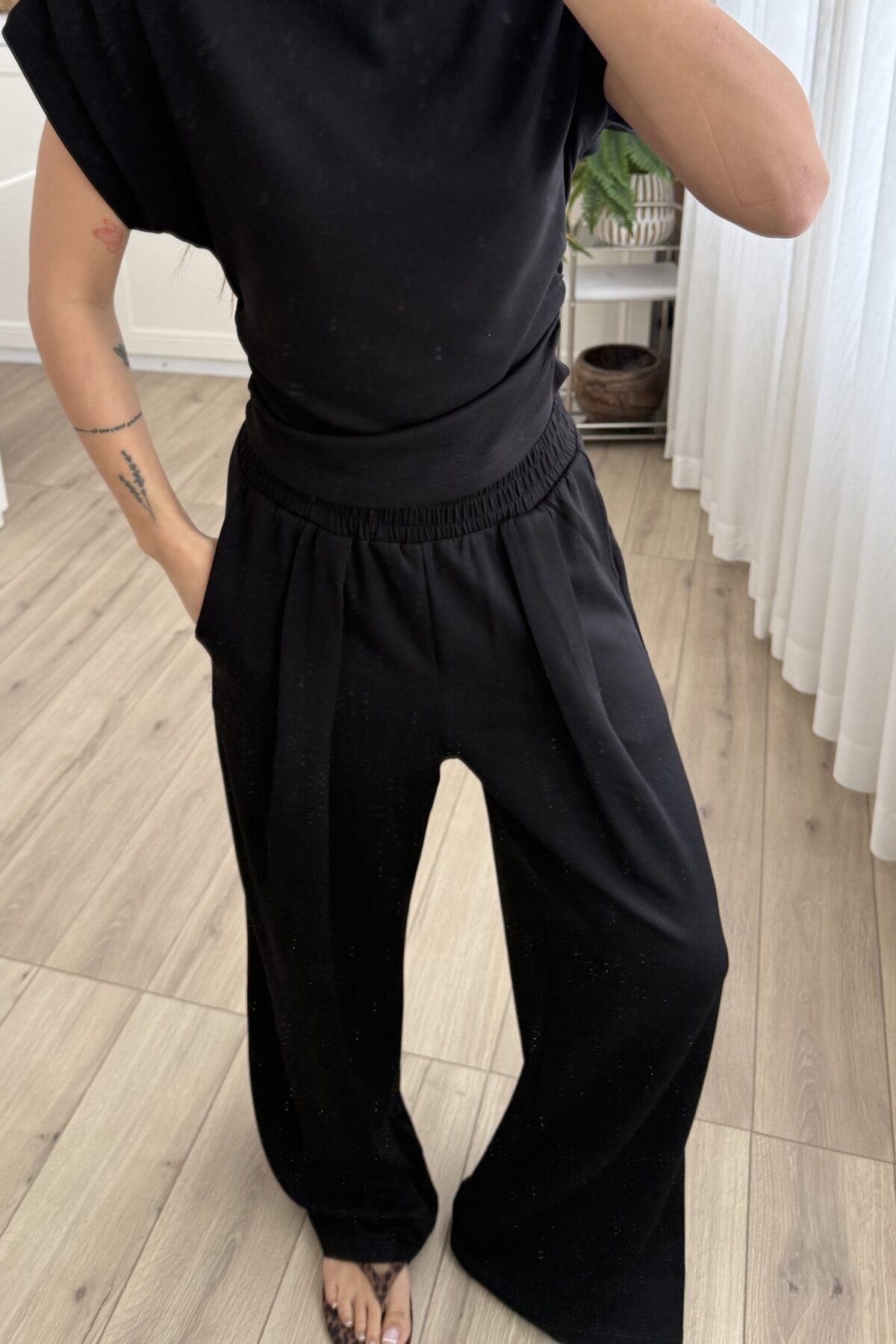 Pile Detaylı Modal Kumaş Takım Siyah