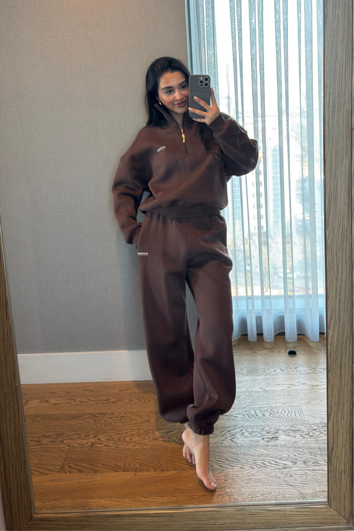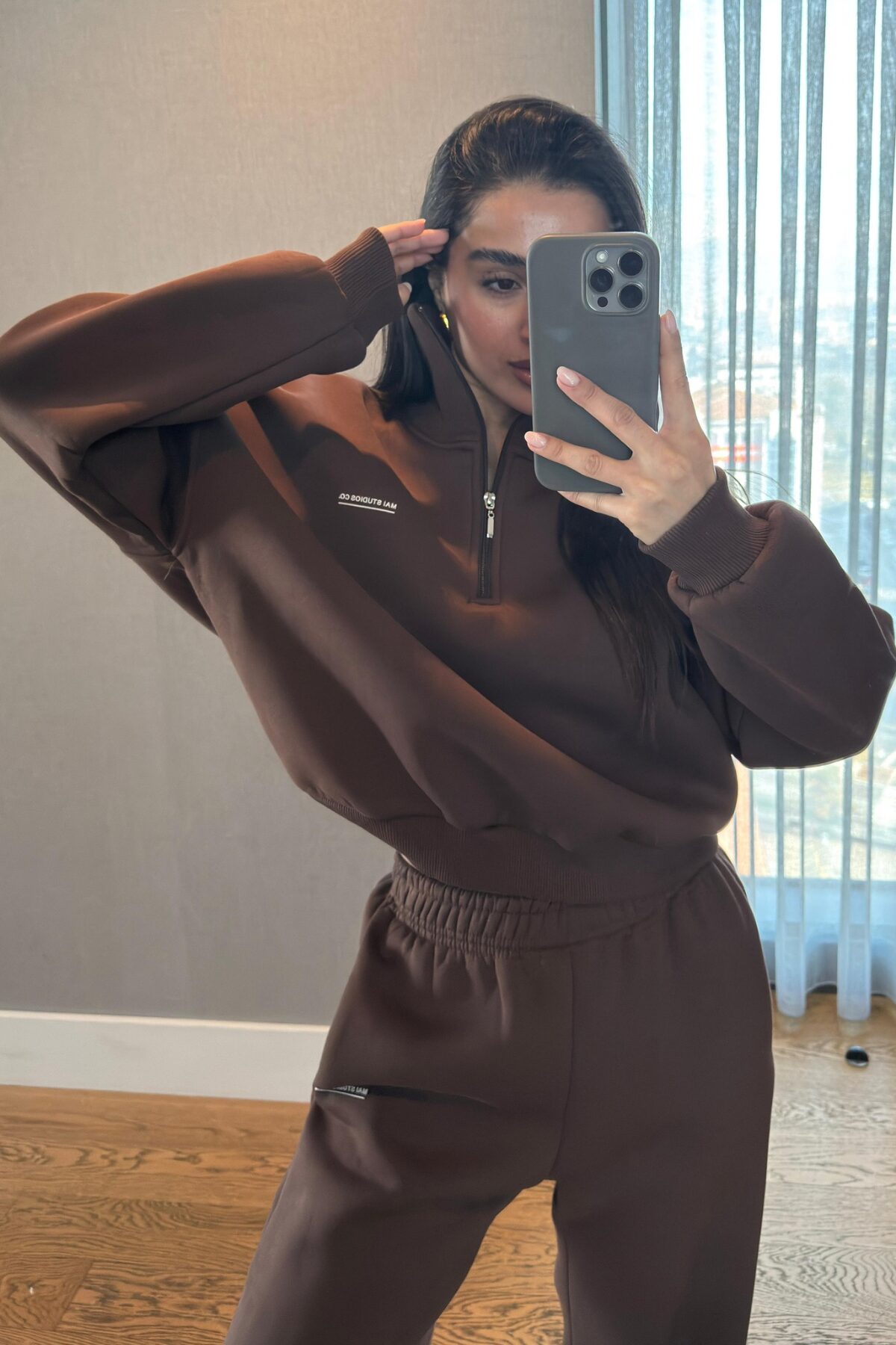 Ravel Fermuarlı Detay Eşofman Takım Kahverengi