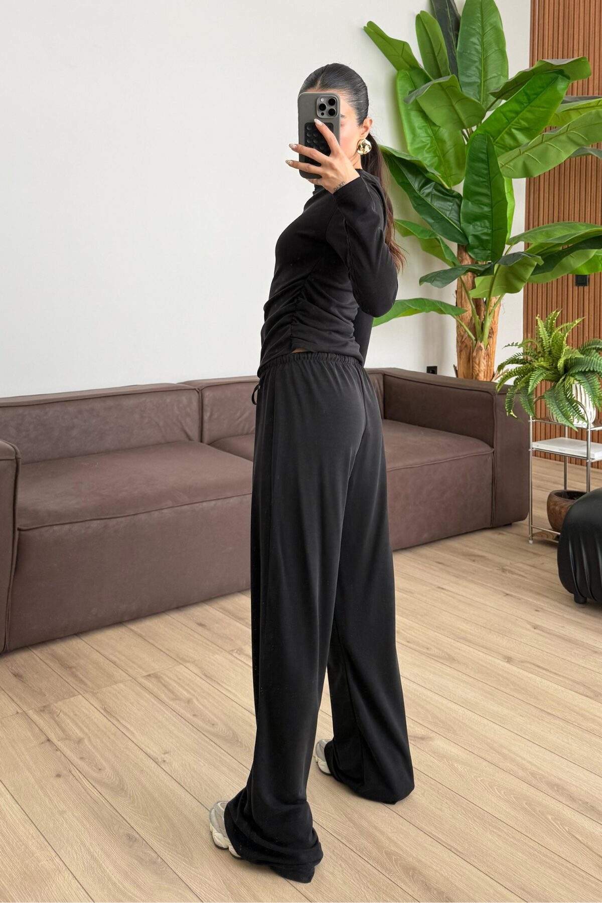 Relax Düşük Omuz Bluz Pantolon Takım Siyah