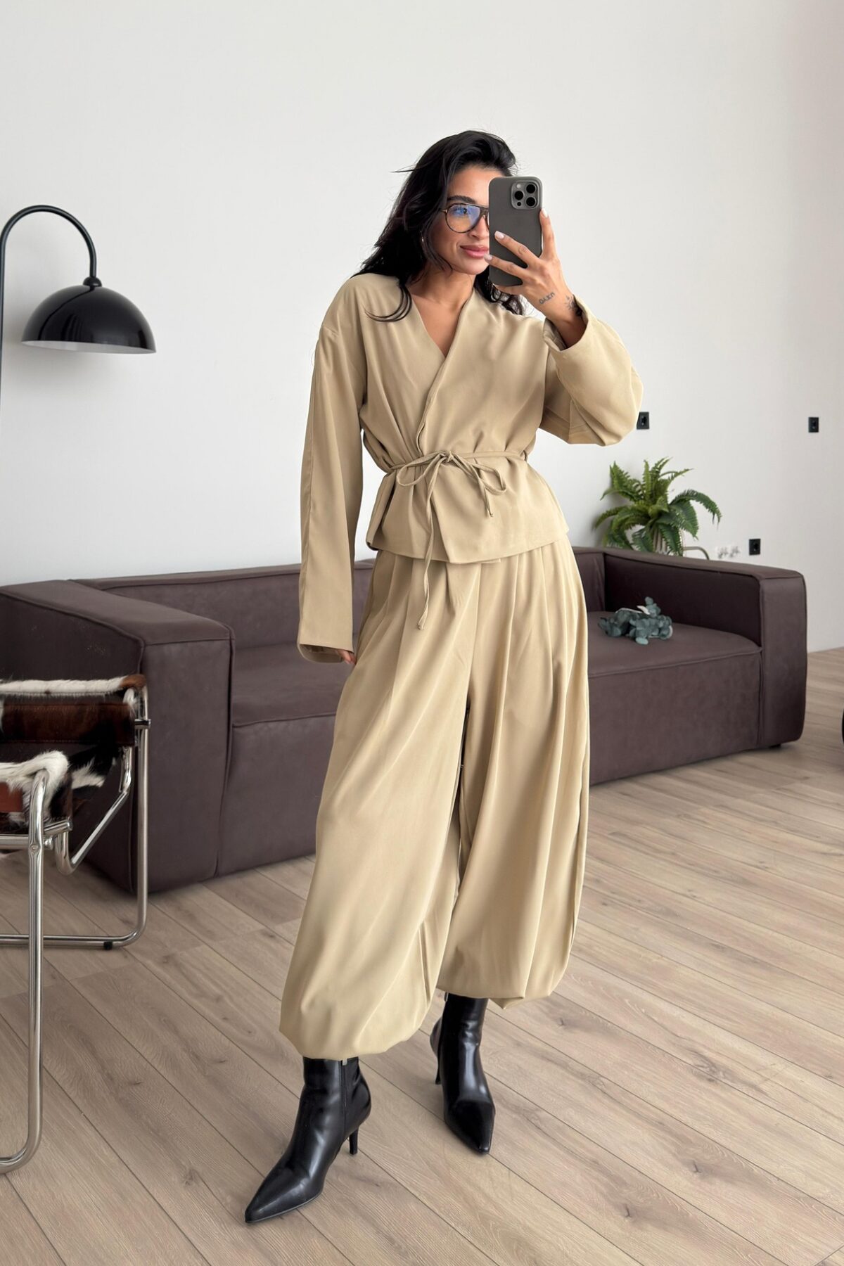 Şalvar Pantolon Ceket Takım Bej