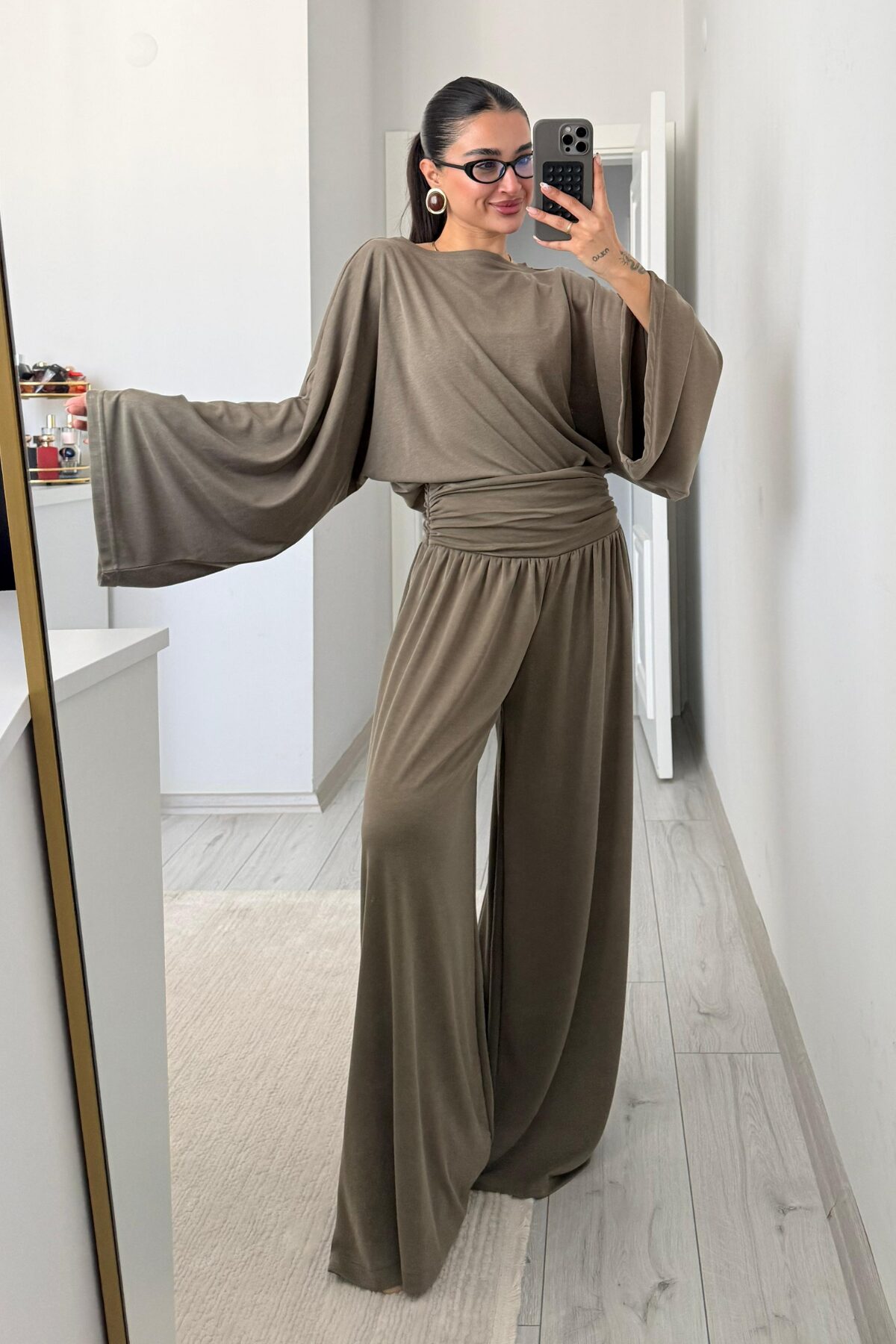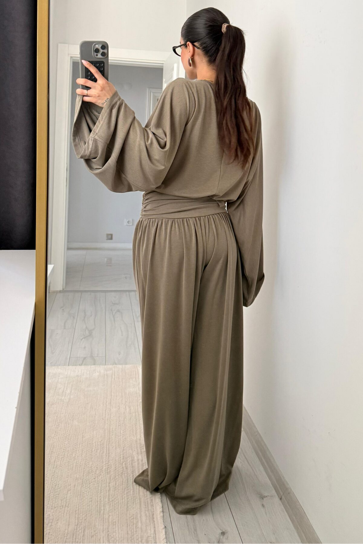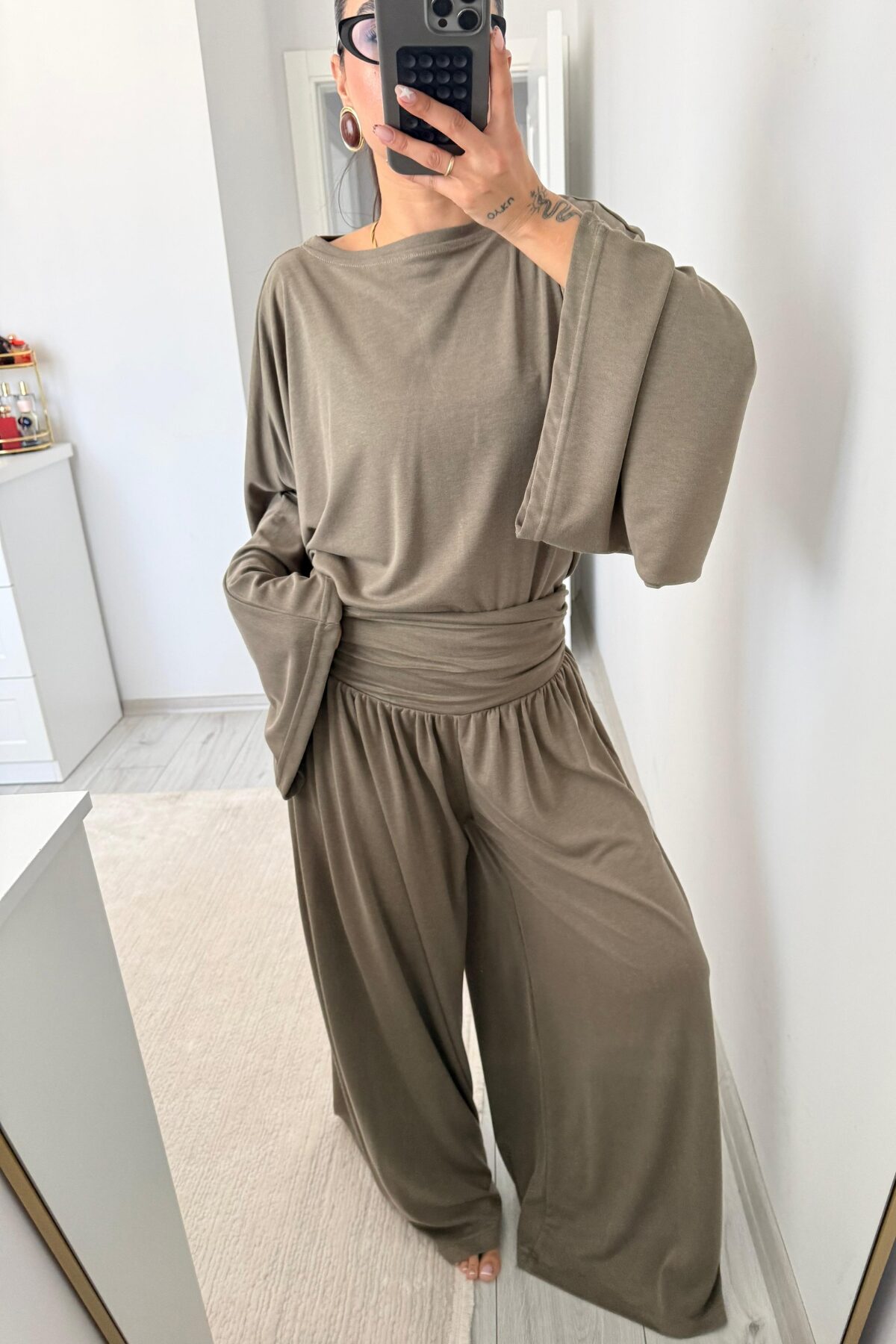 St Yarasa Kollu Beli Drapeli Pantolon Takım Haki