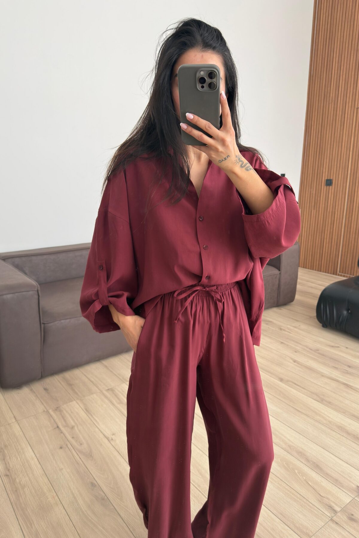 Tensel Gömlek Pantolon Takım Bordo