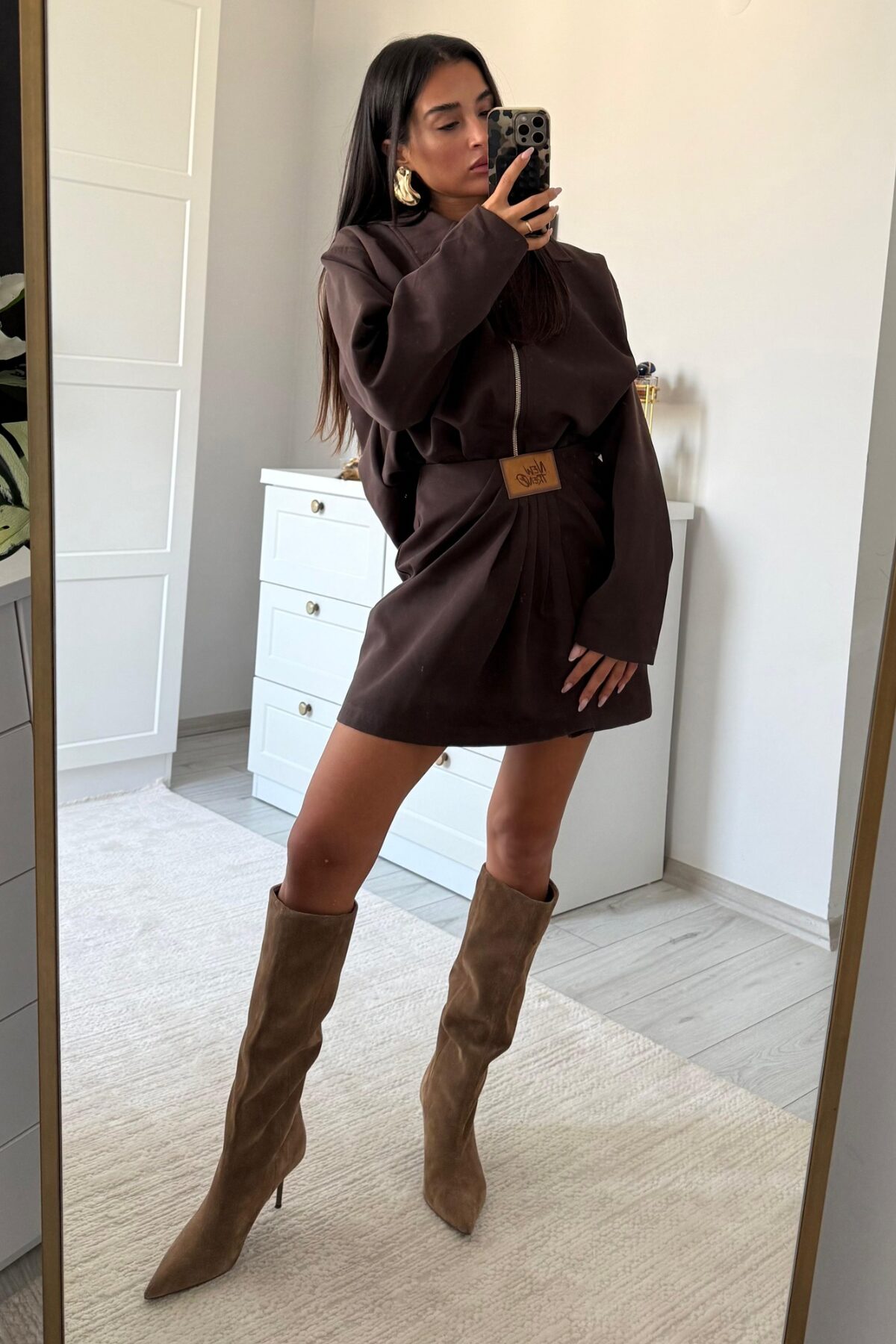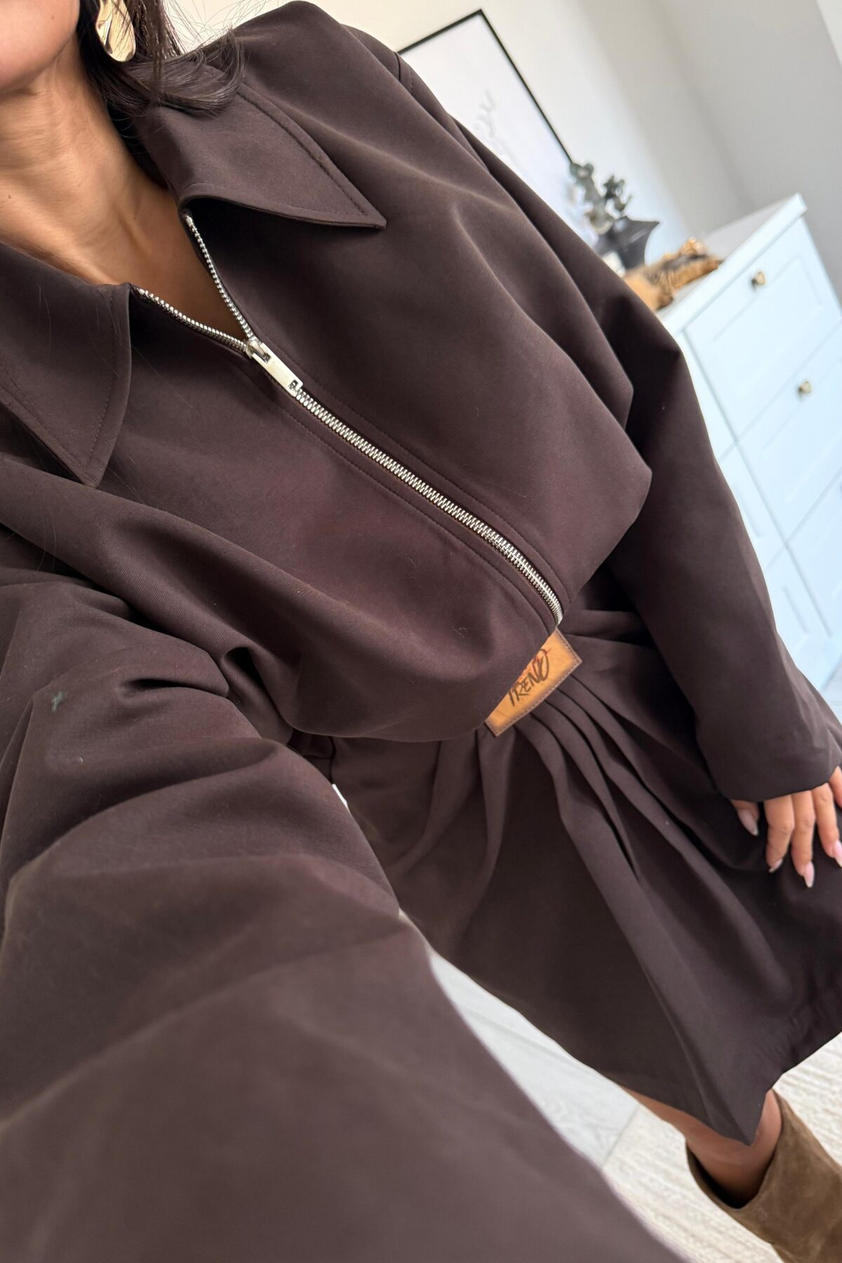 Trend Büzgülü Etek Ceket Takım Acı Kahve