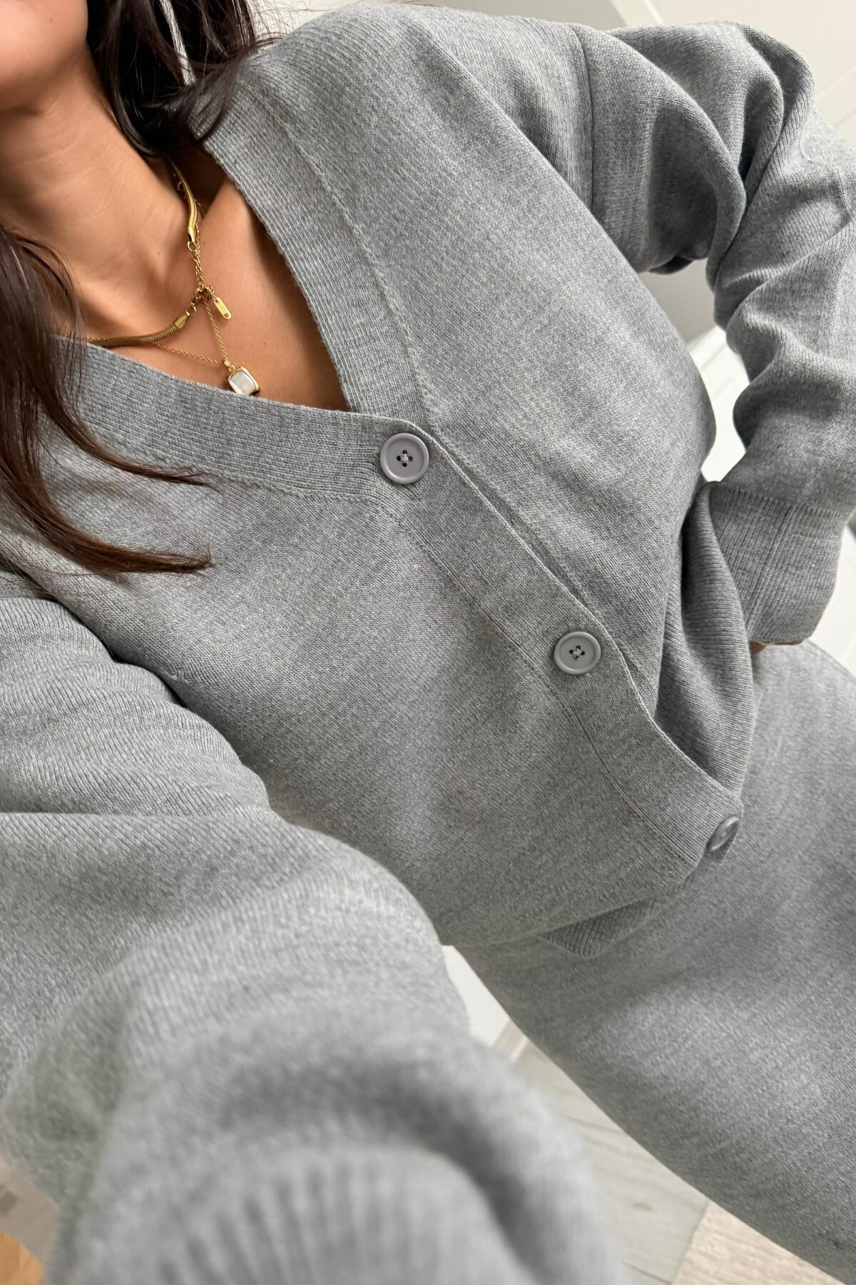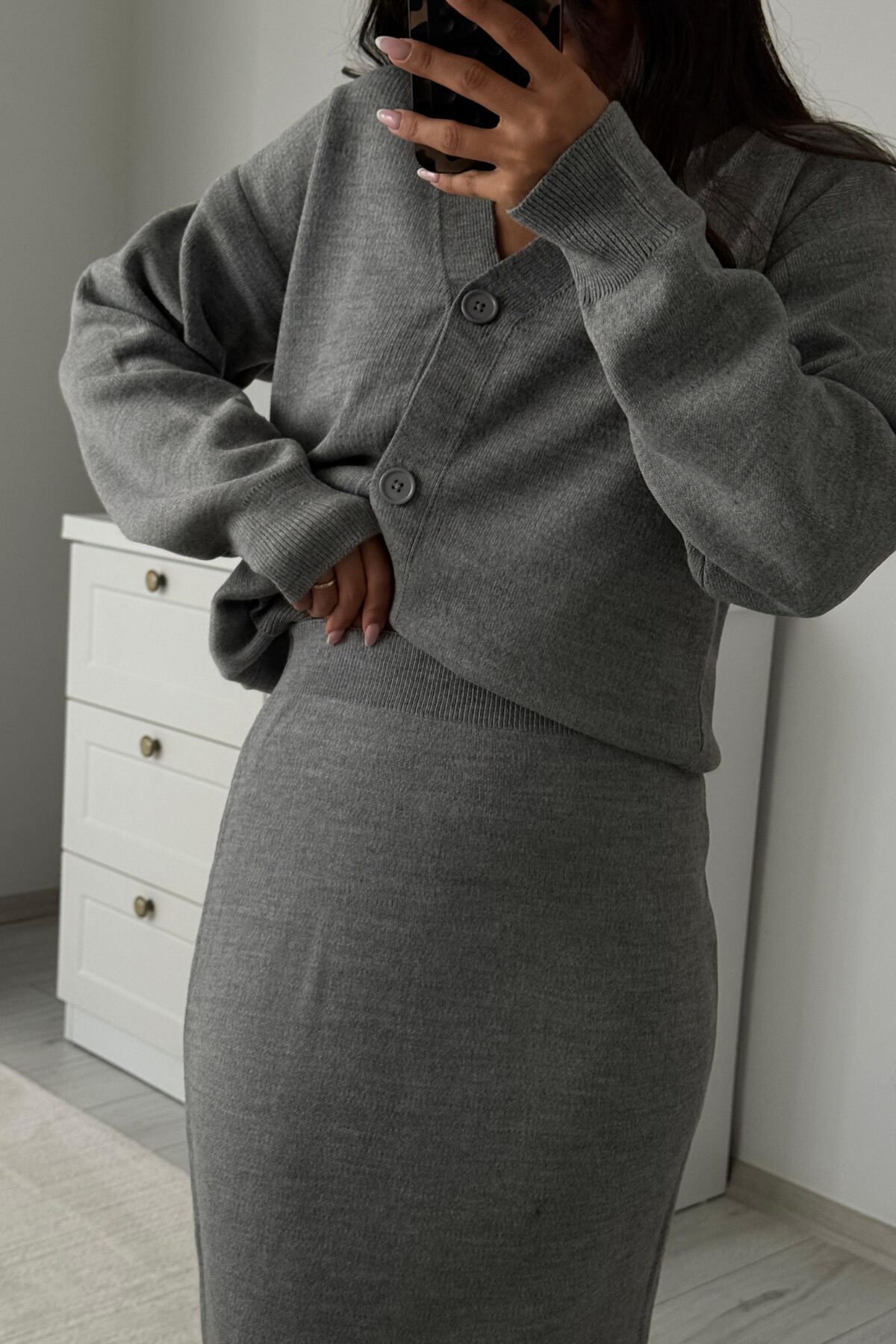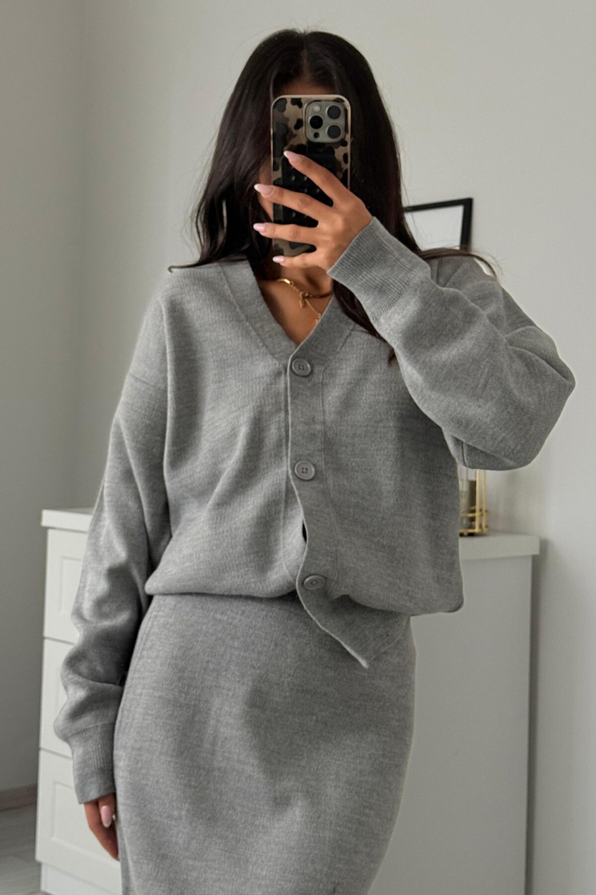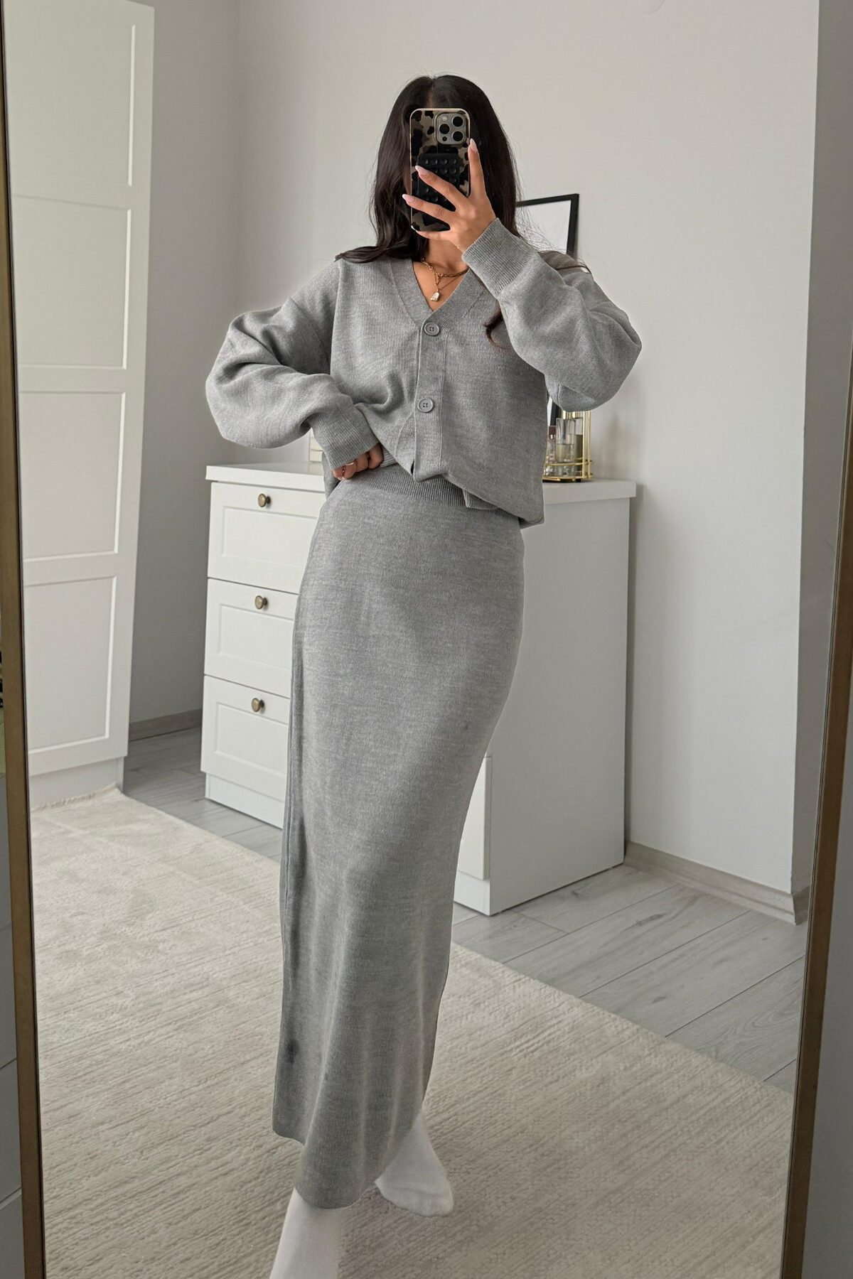 “V Yaka Düğmeli Triko Etek Takım Gri” için yorum yapan ilk kişi siz olun