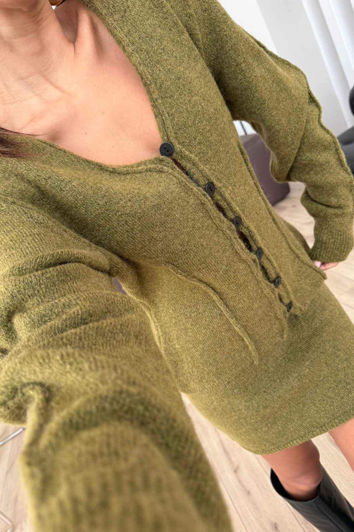“V Yaka Hırka Triko Etek Takım Haki” için yorum yapan ilk kişi siz olun