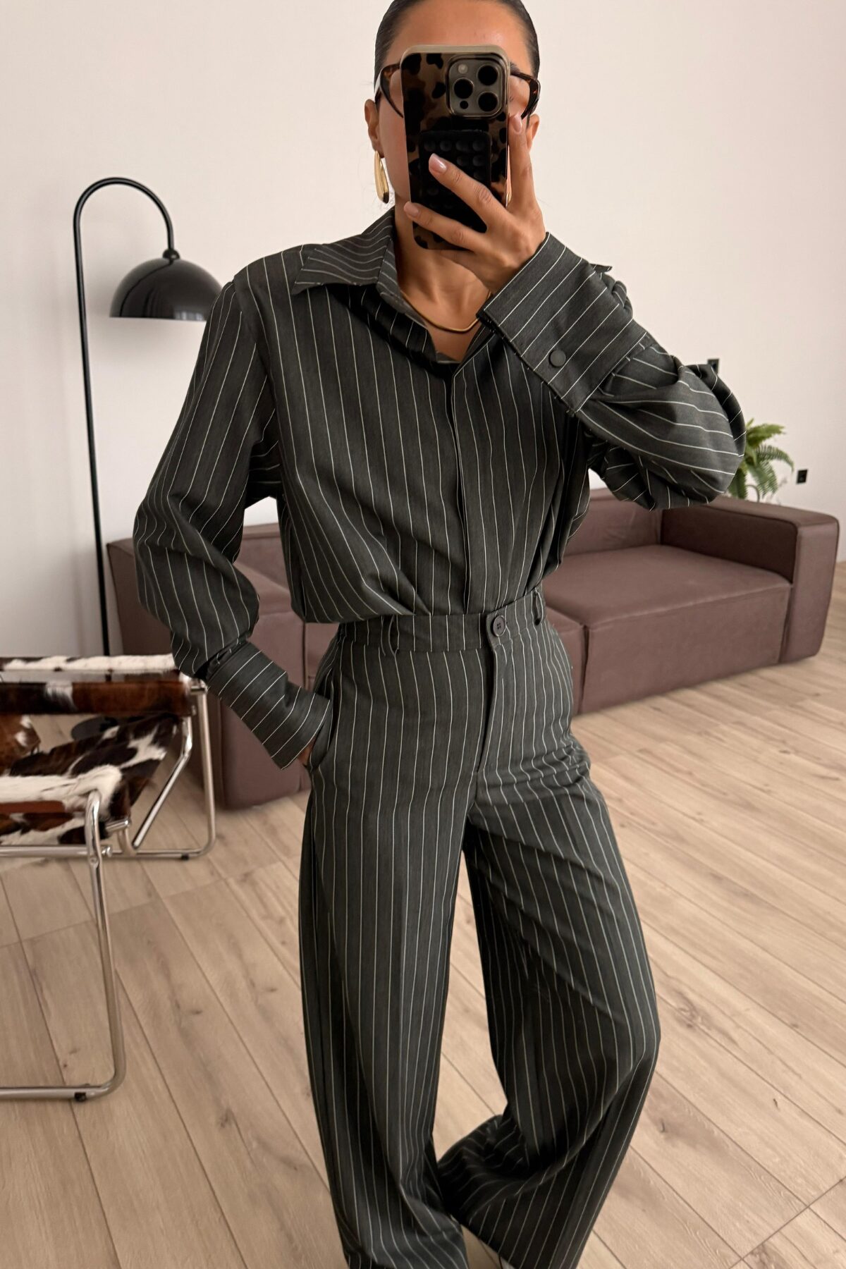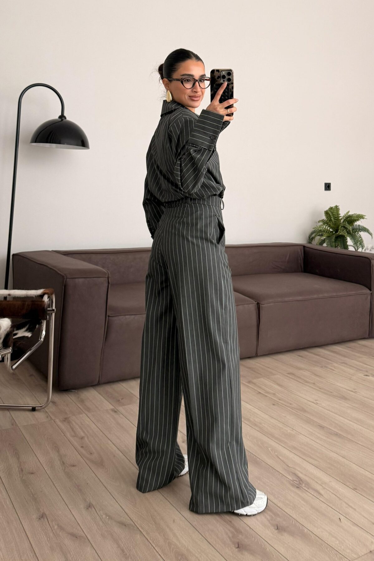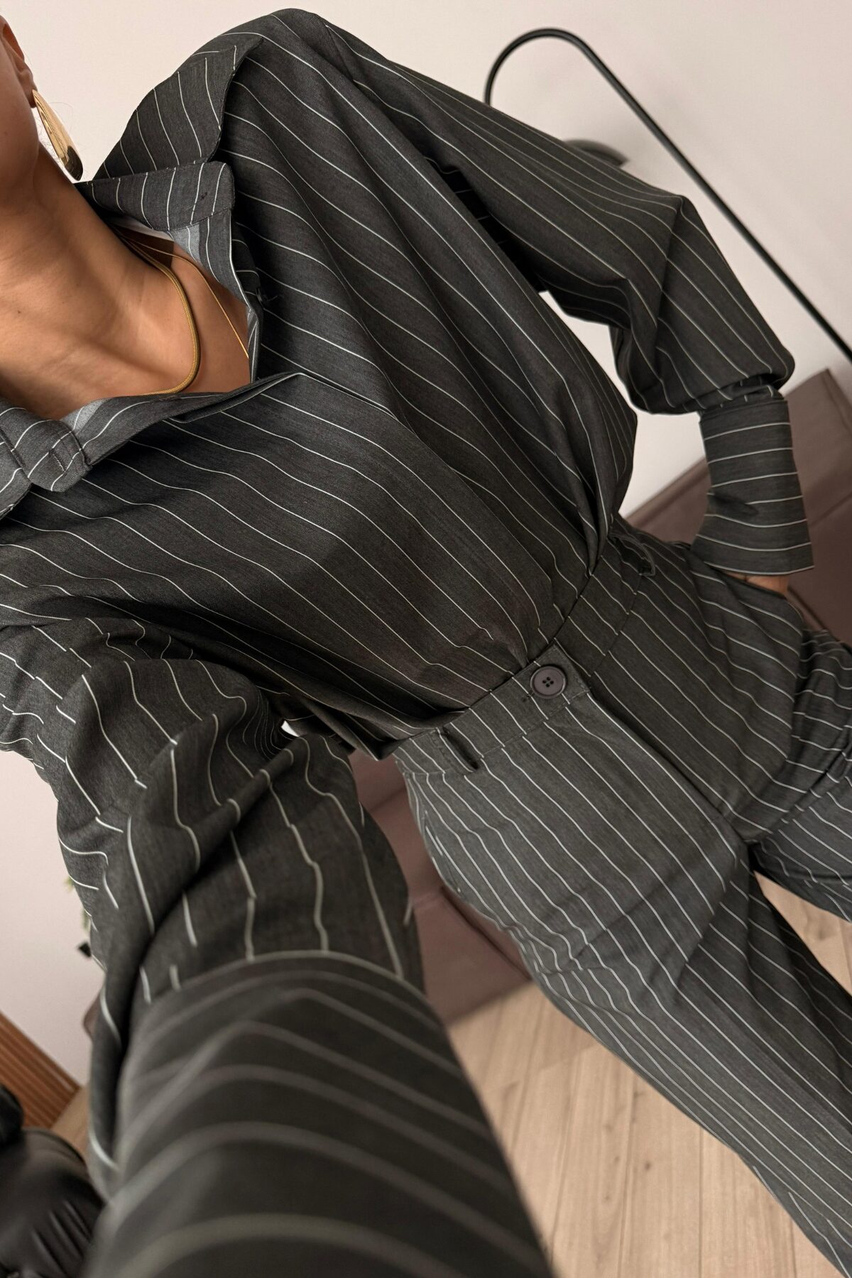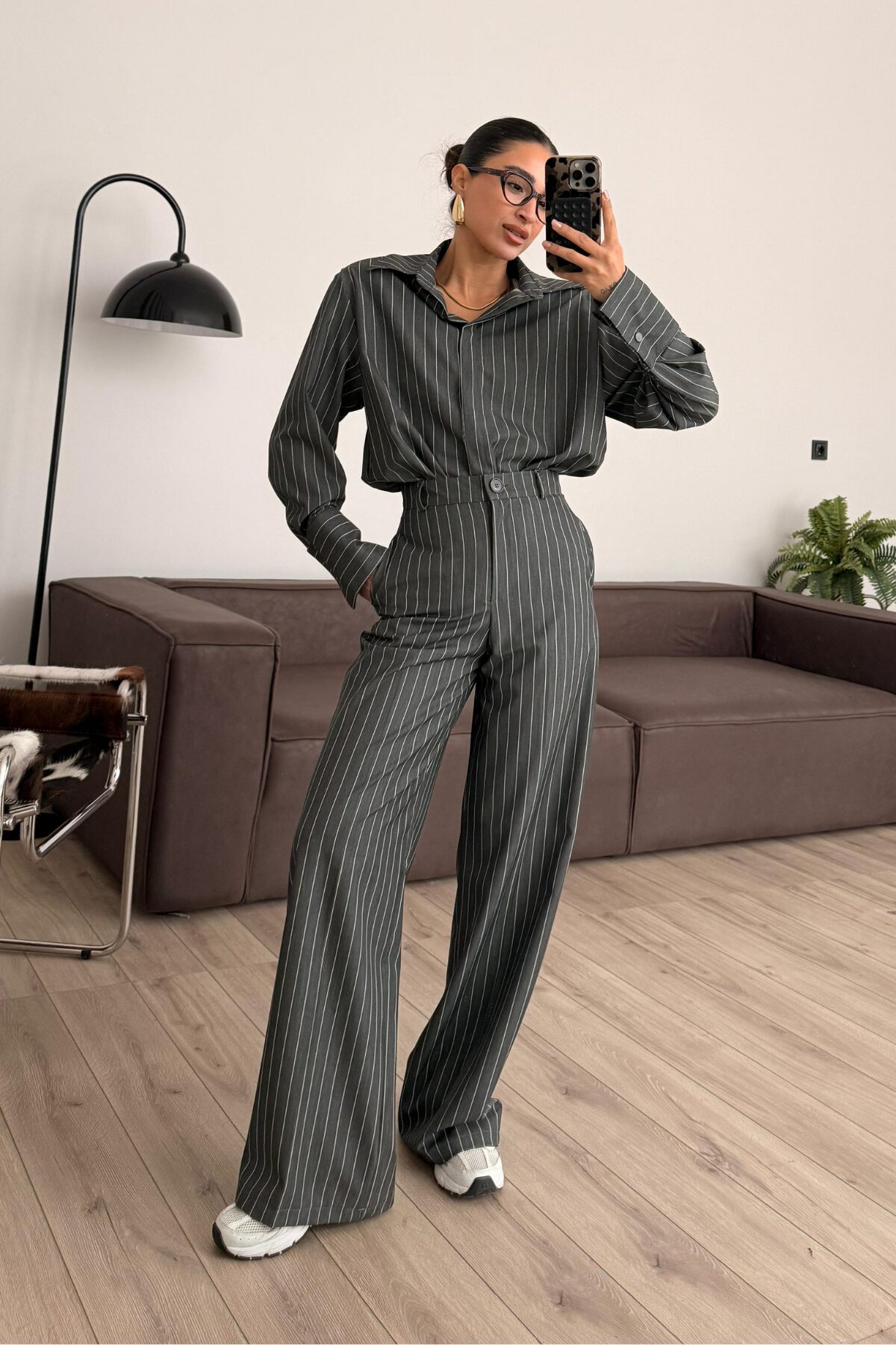 Vatkalı Çizgili Pantolon Takım Antrasit