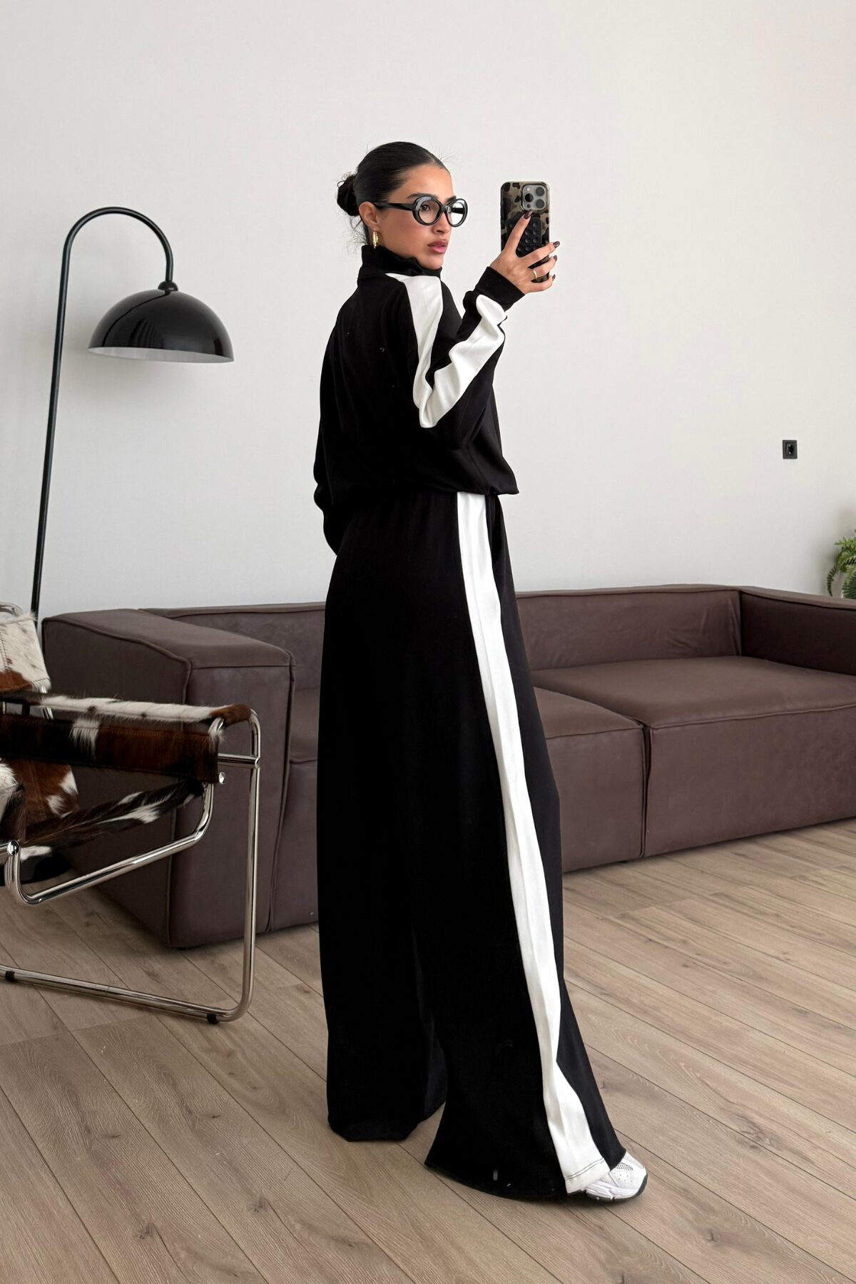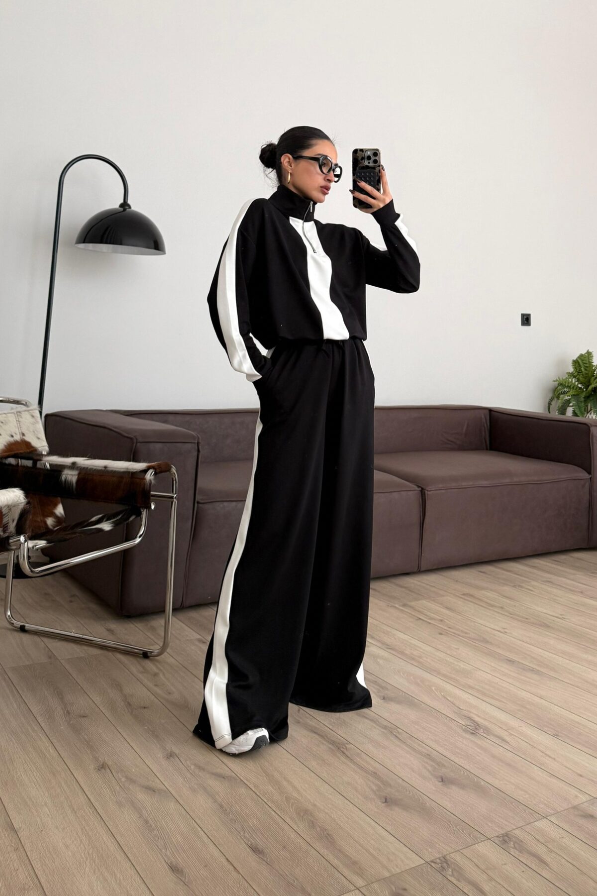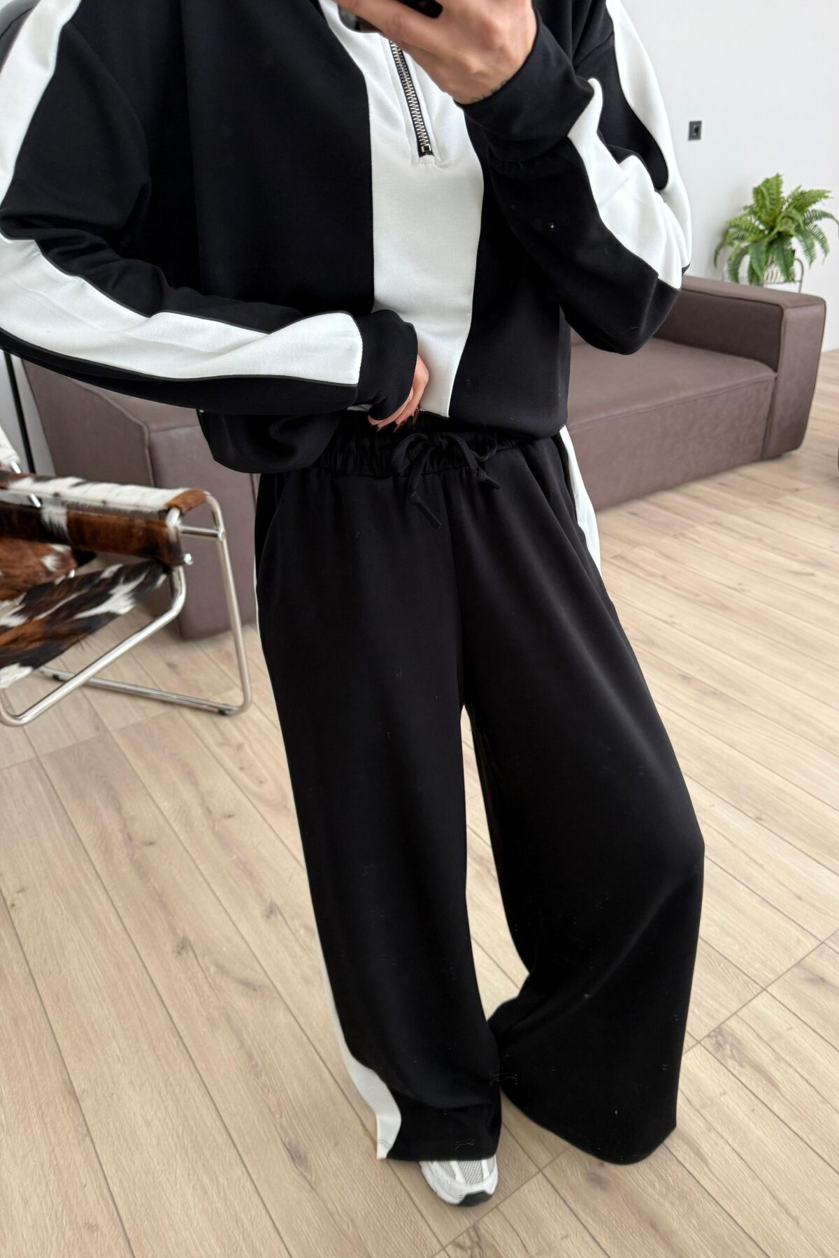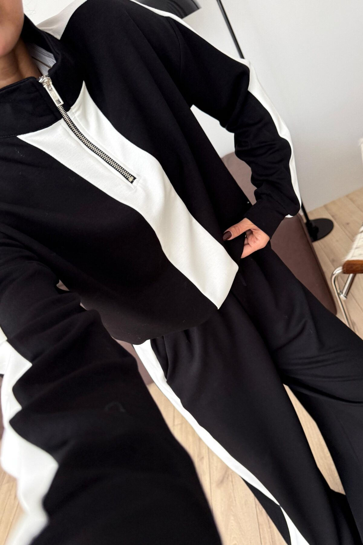 Yakası Fermuarlı Şeritli Modal Takım Siyah