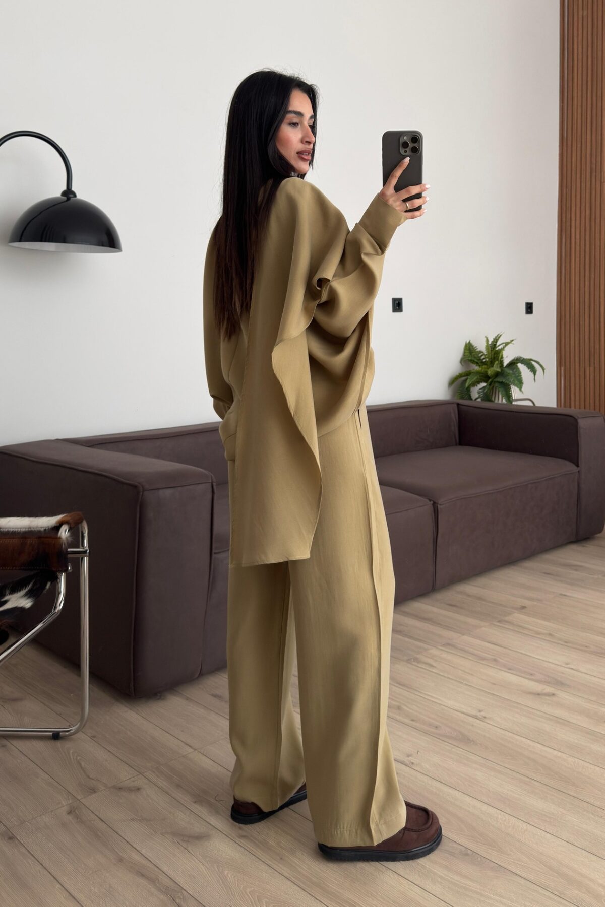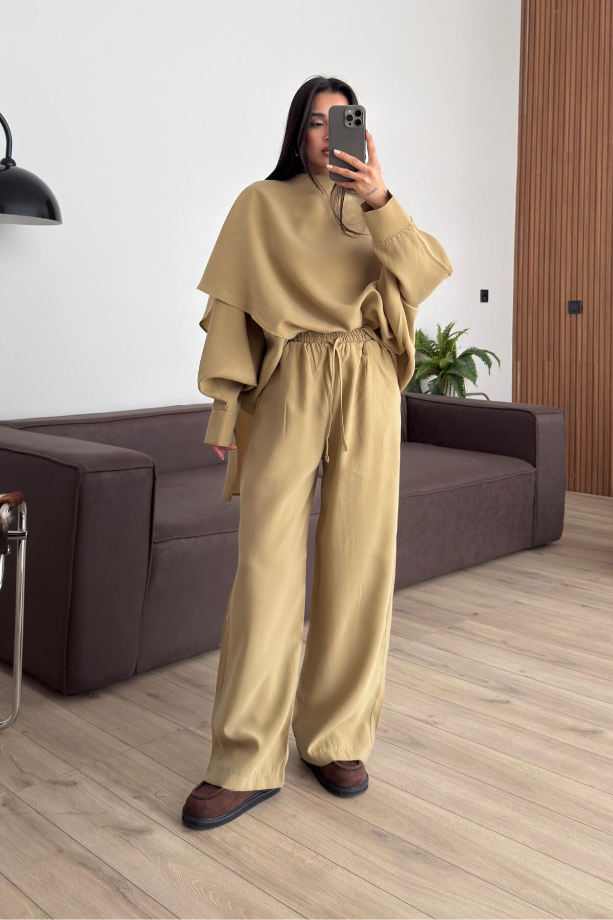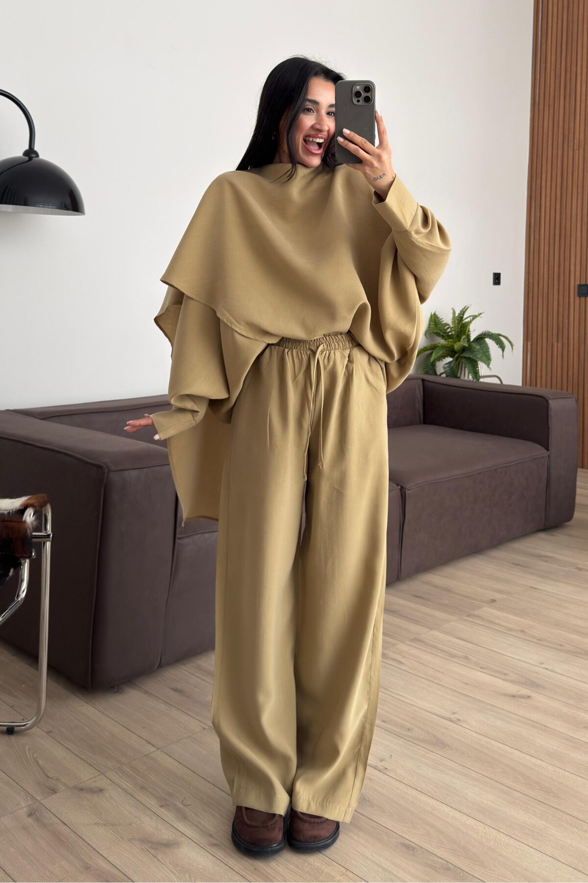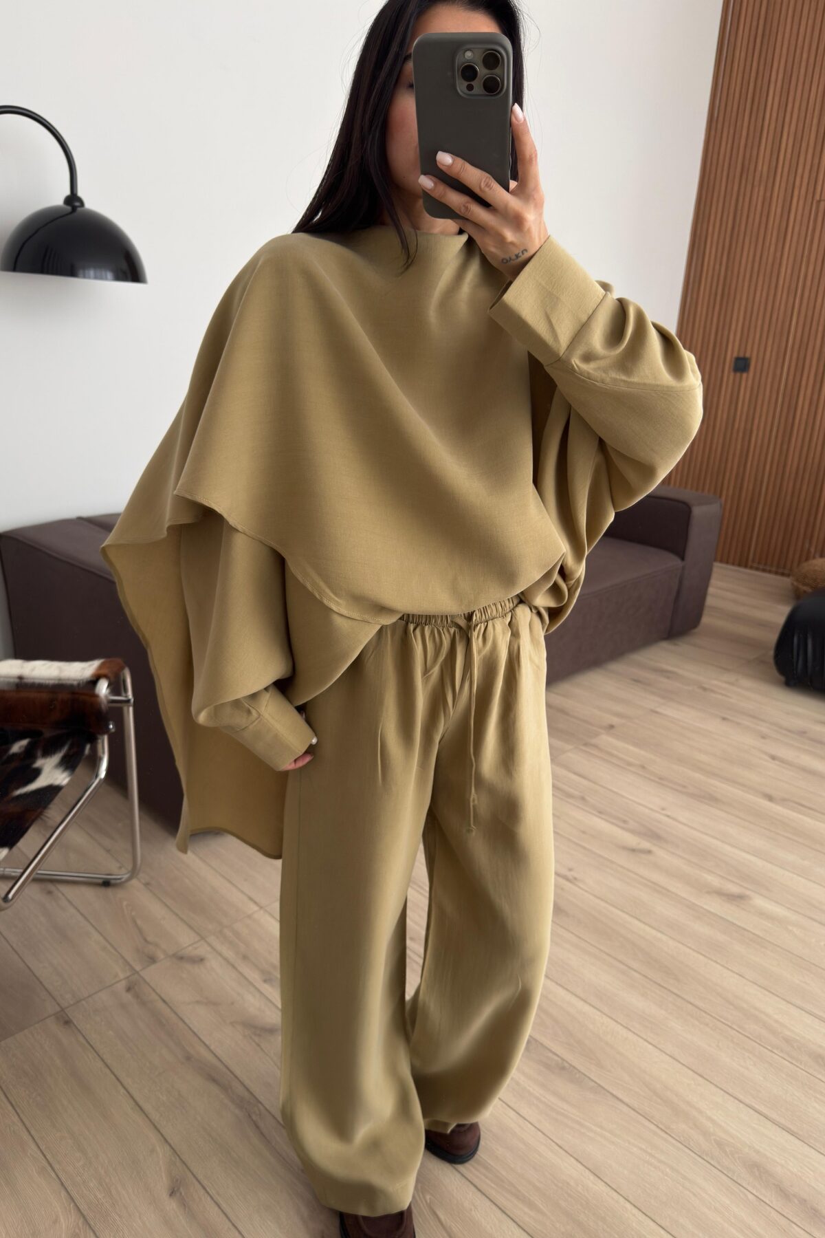 Yarasa Kol Pelerin Detaylı Pantolon Takım Haki