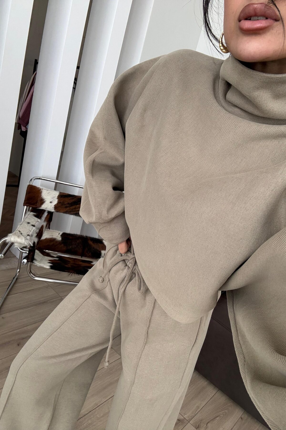 Yarasa Kollu Balıkçı Yaka Triko Takım Açık Haki