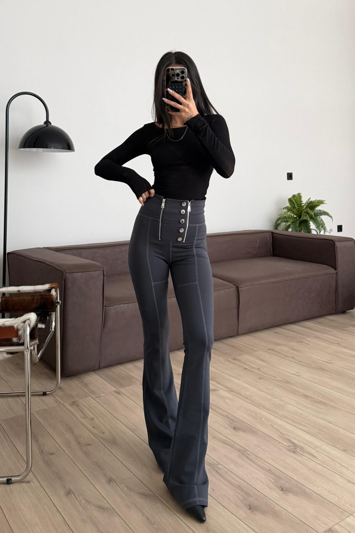 Çift Fermuarlı İspanyol Paça Tayt Antrasit