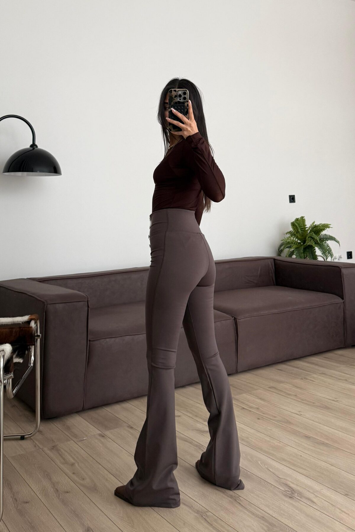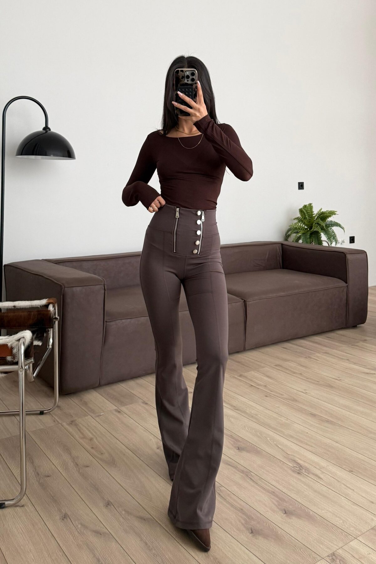 Çift Fermuarlı İspanyol Paça Tayt Vizon