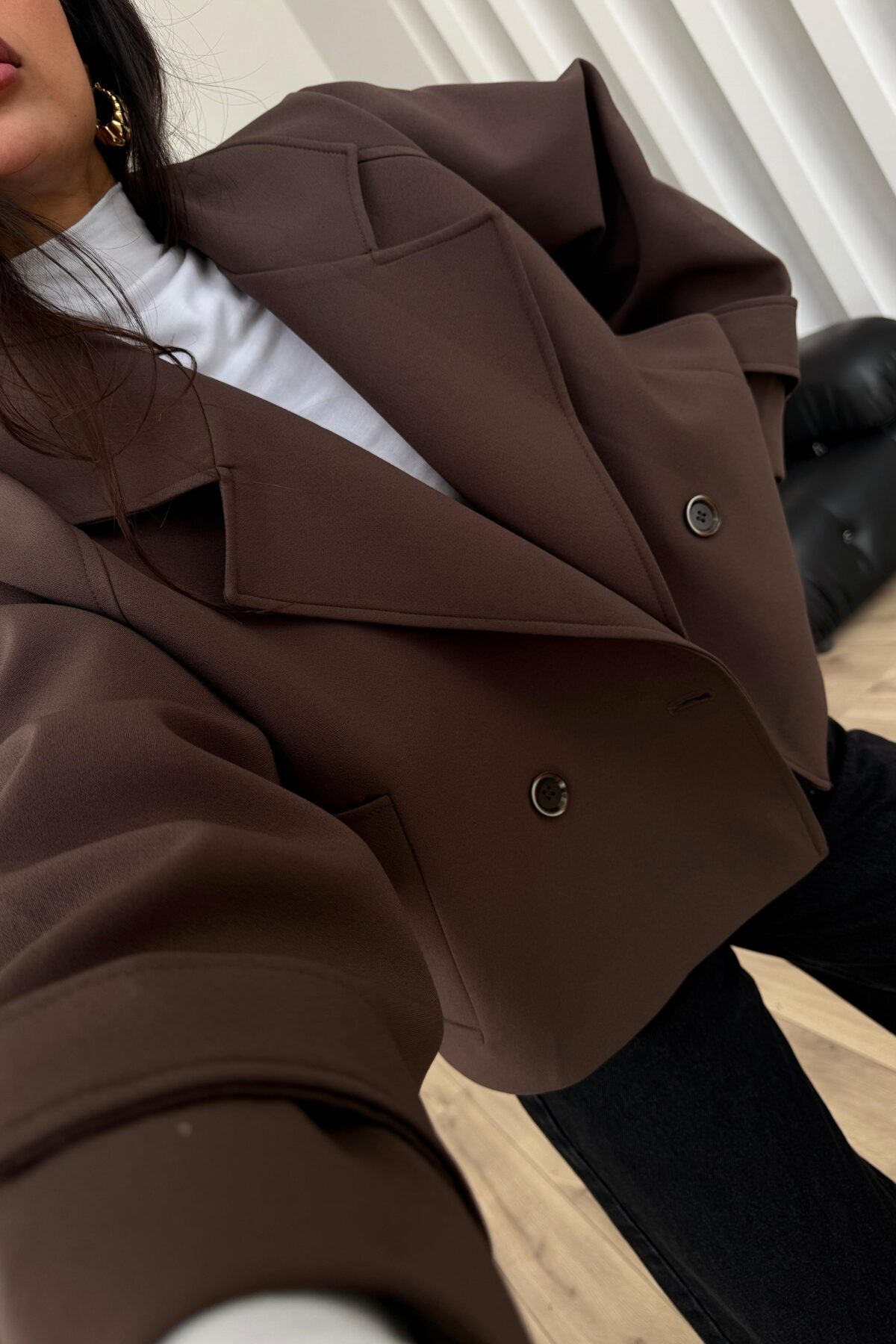 Crep Kumaş Düğmeli Trenç Kahverengi