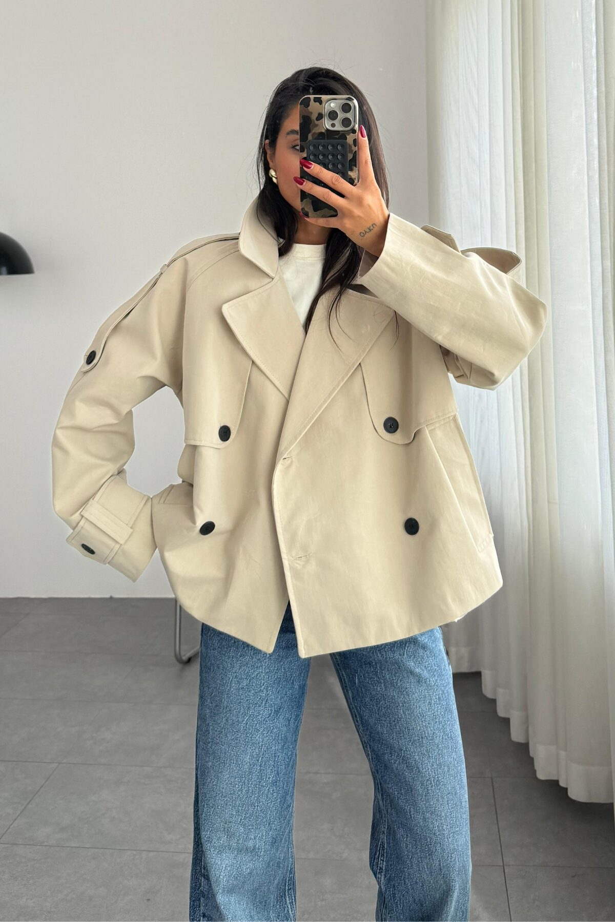 Davina Rüzgarlıklı Kısa Trençkot Taş