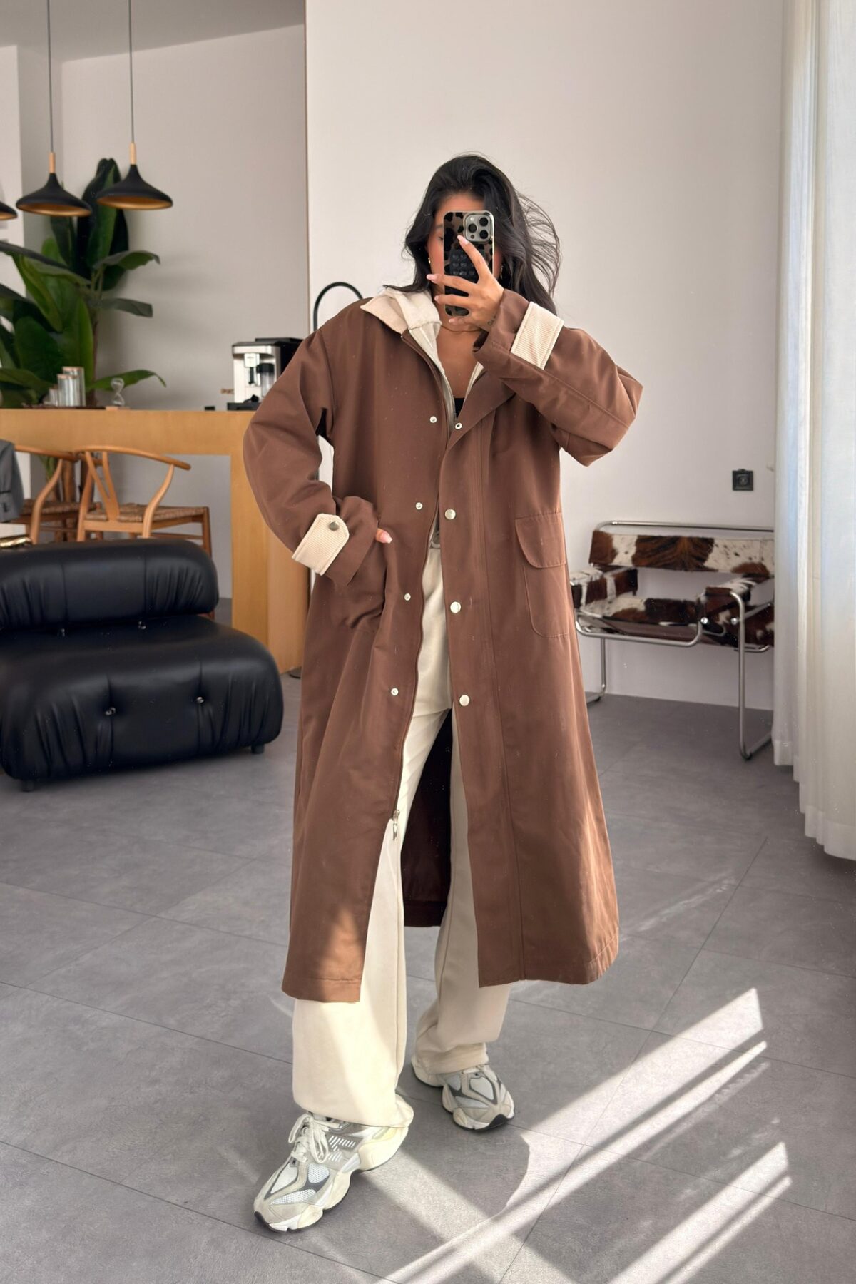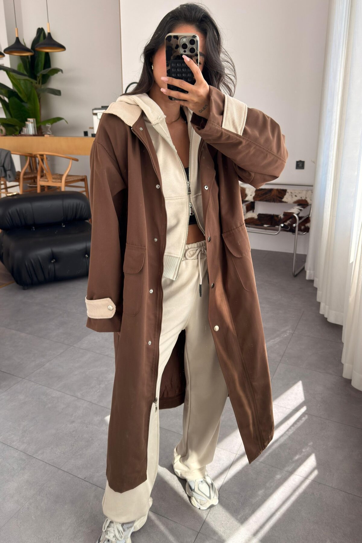Fitilli Kadife Yaka Kahve Retro Trenç