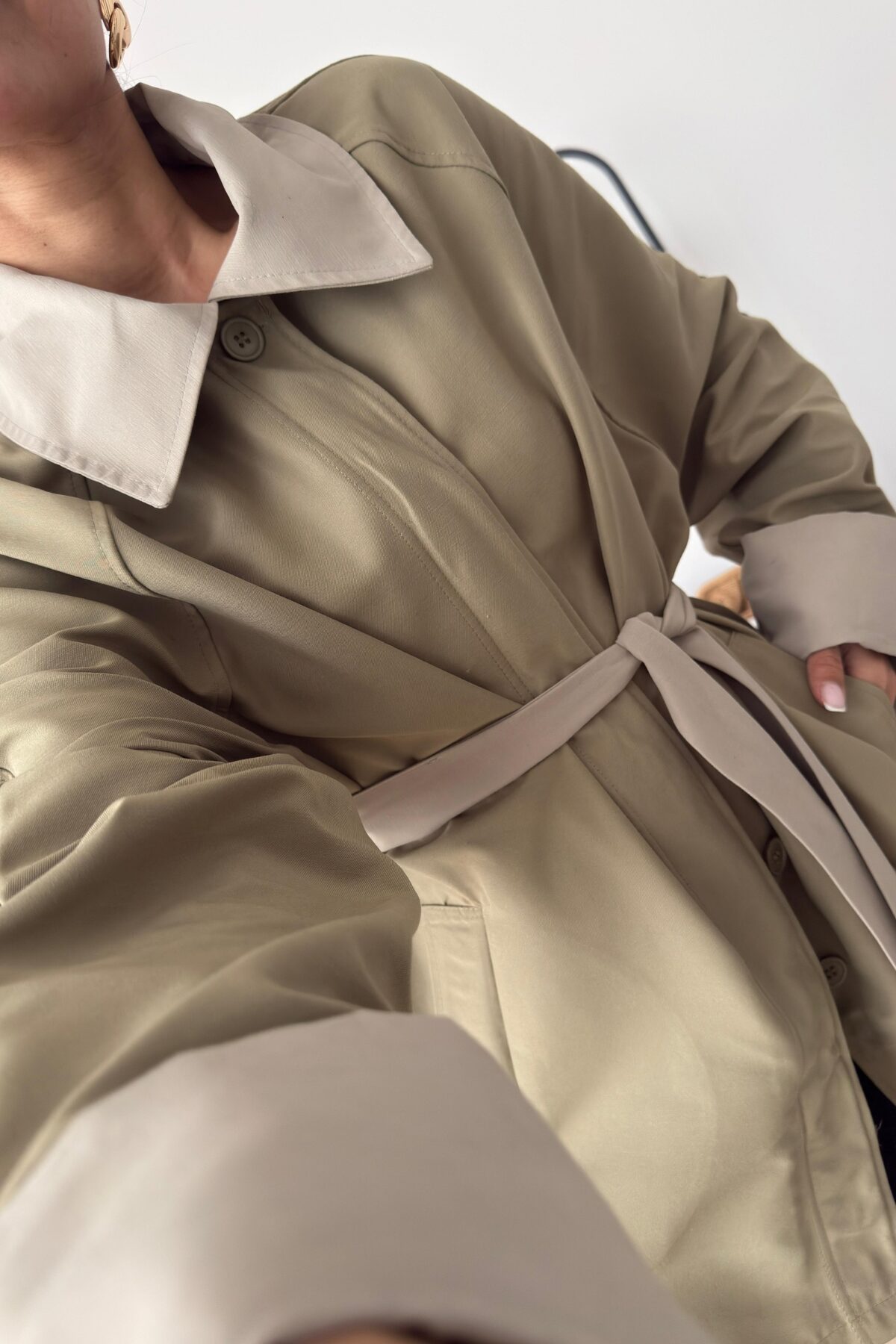 Garnili Bağlamalı Trençkot Çağla