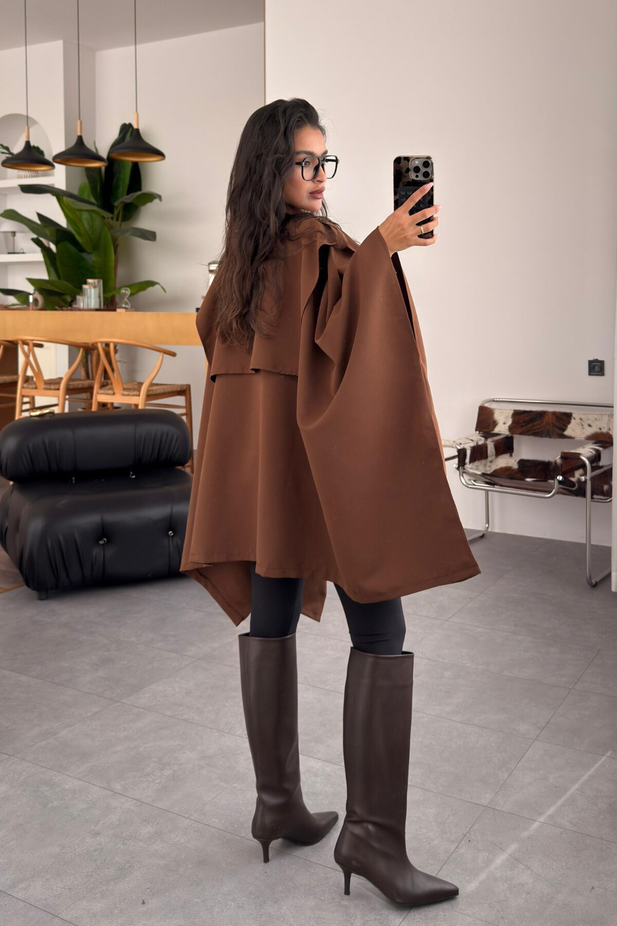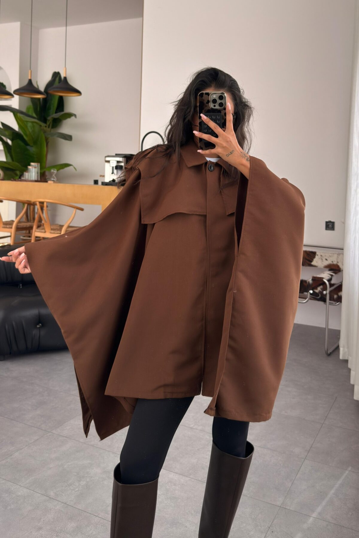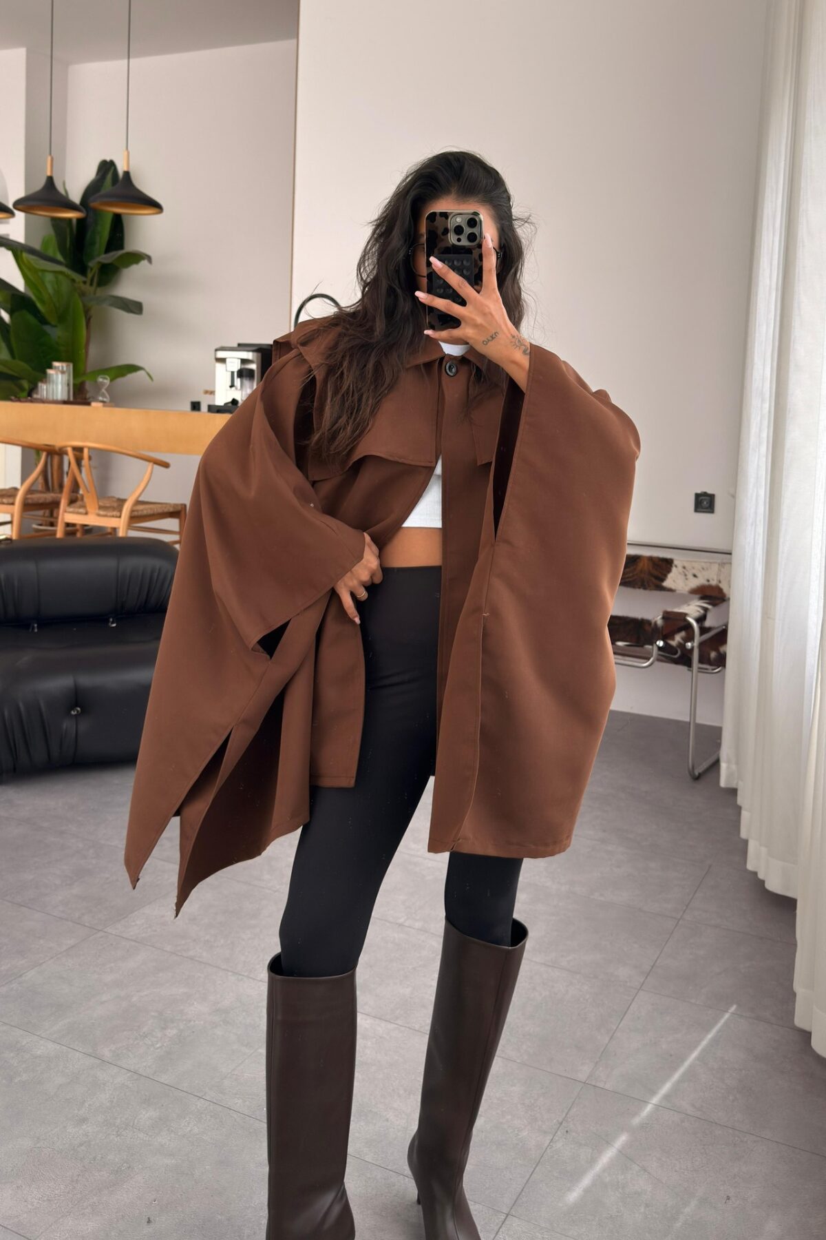 Pelerin Tek Düğmeli Trenç Acı Kahve