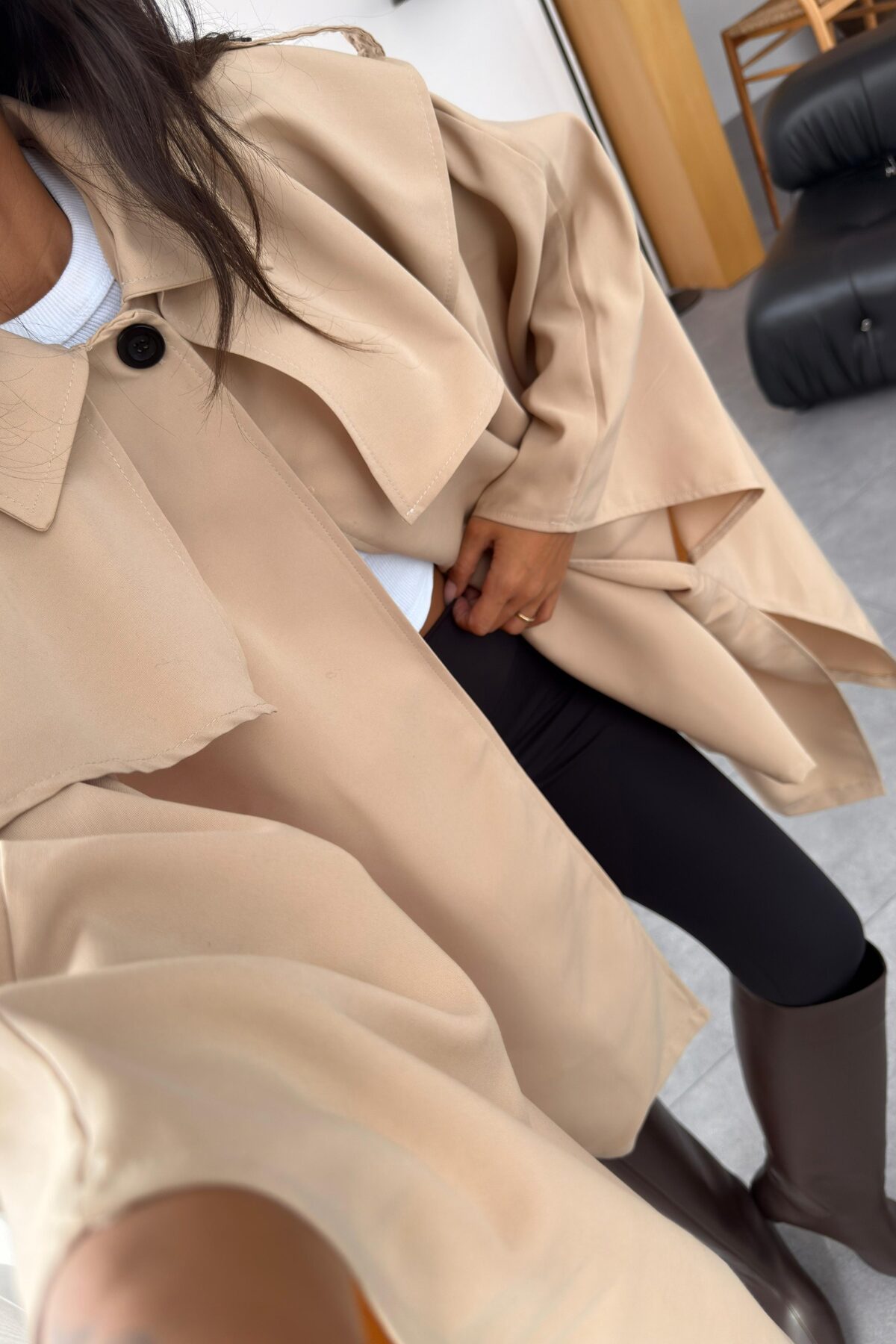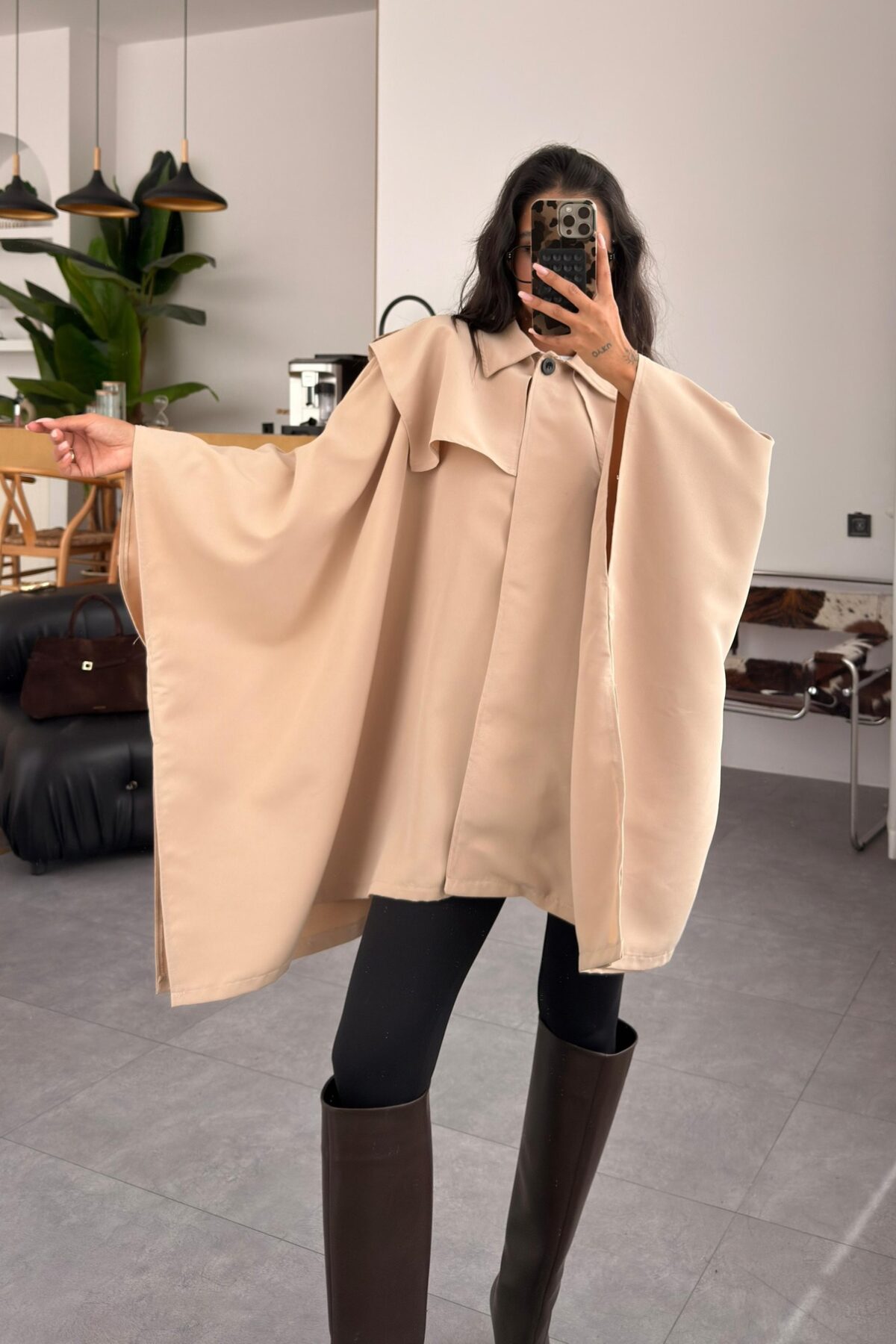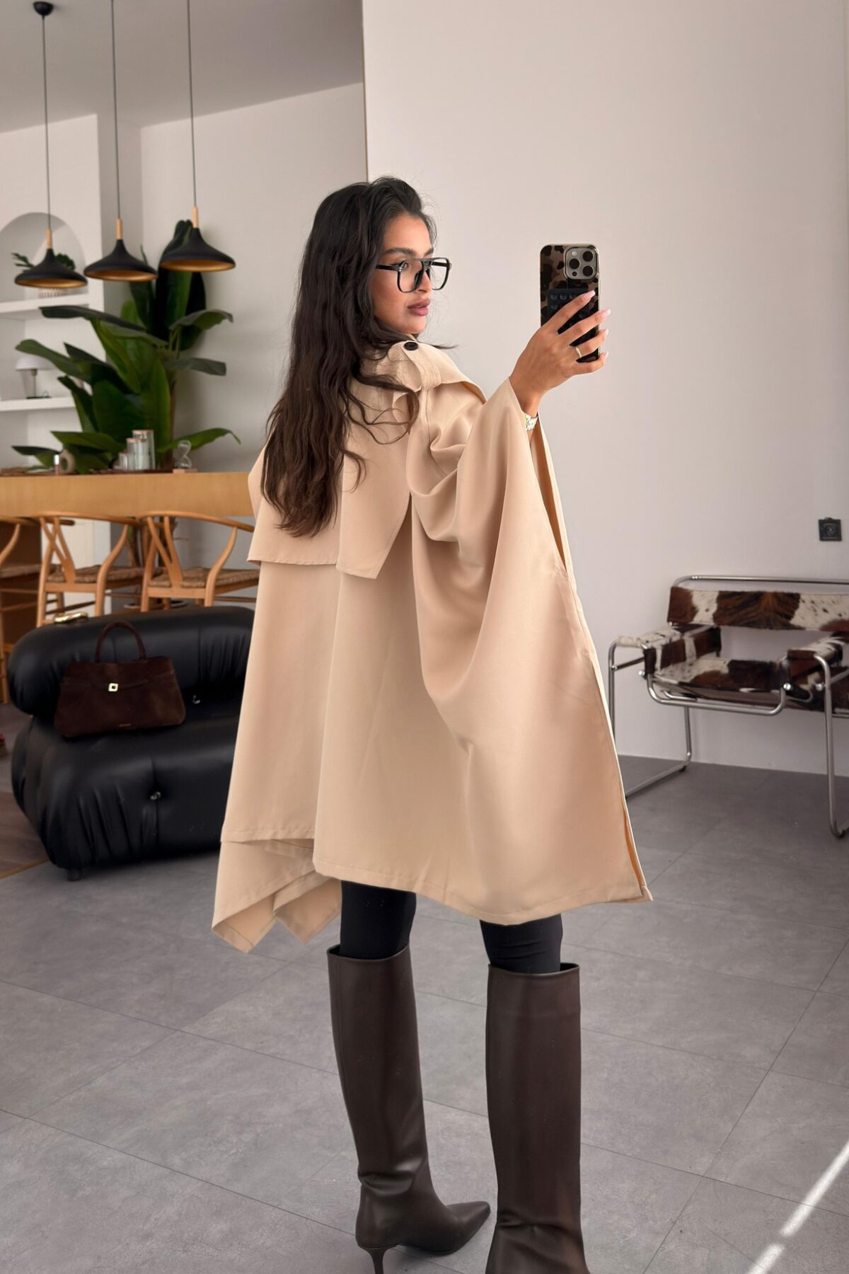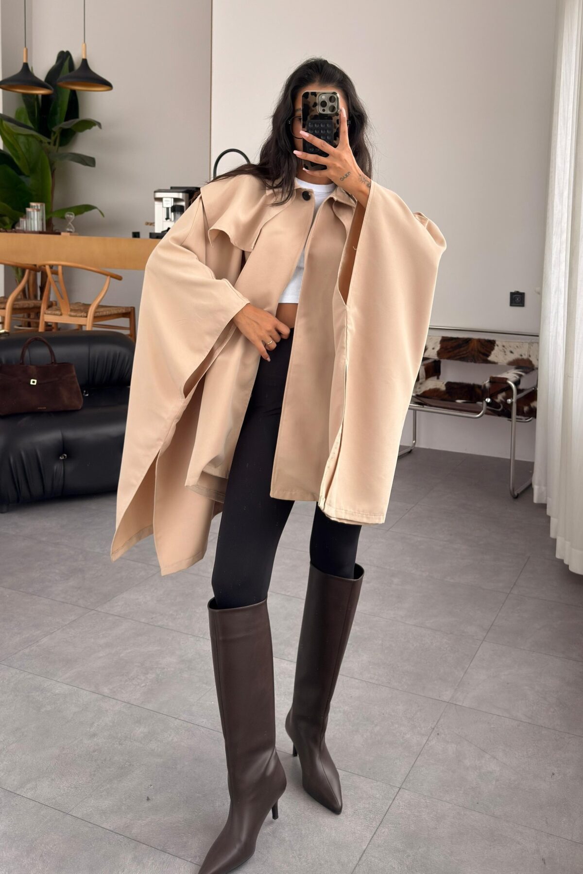 “Pelerin Tek Düğmeli Trenç Bej” için yorum yapan ilk kişi siz olun