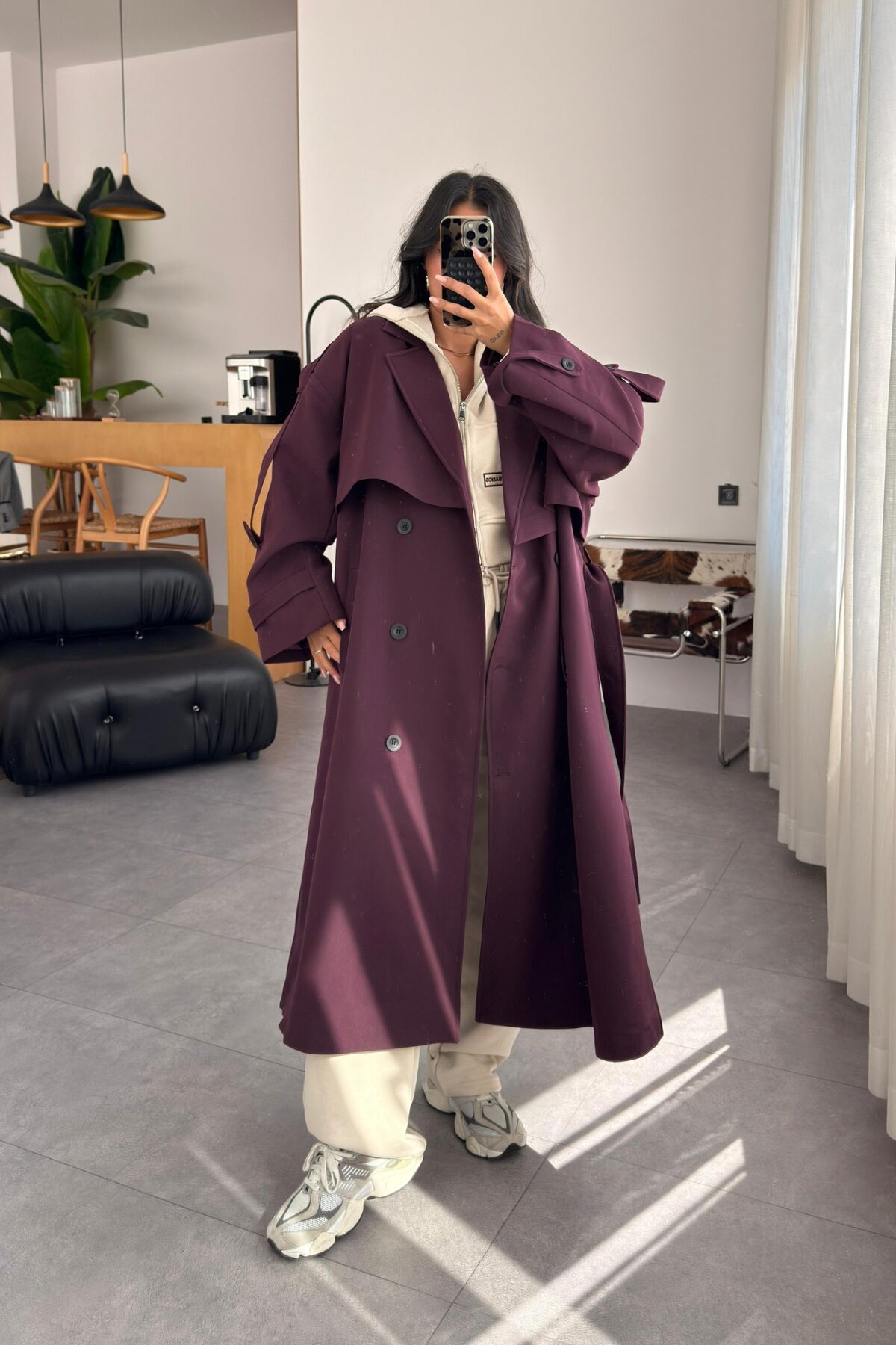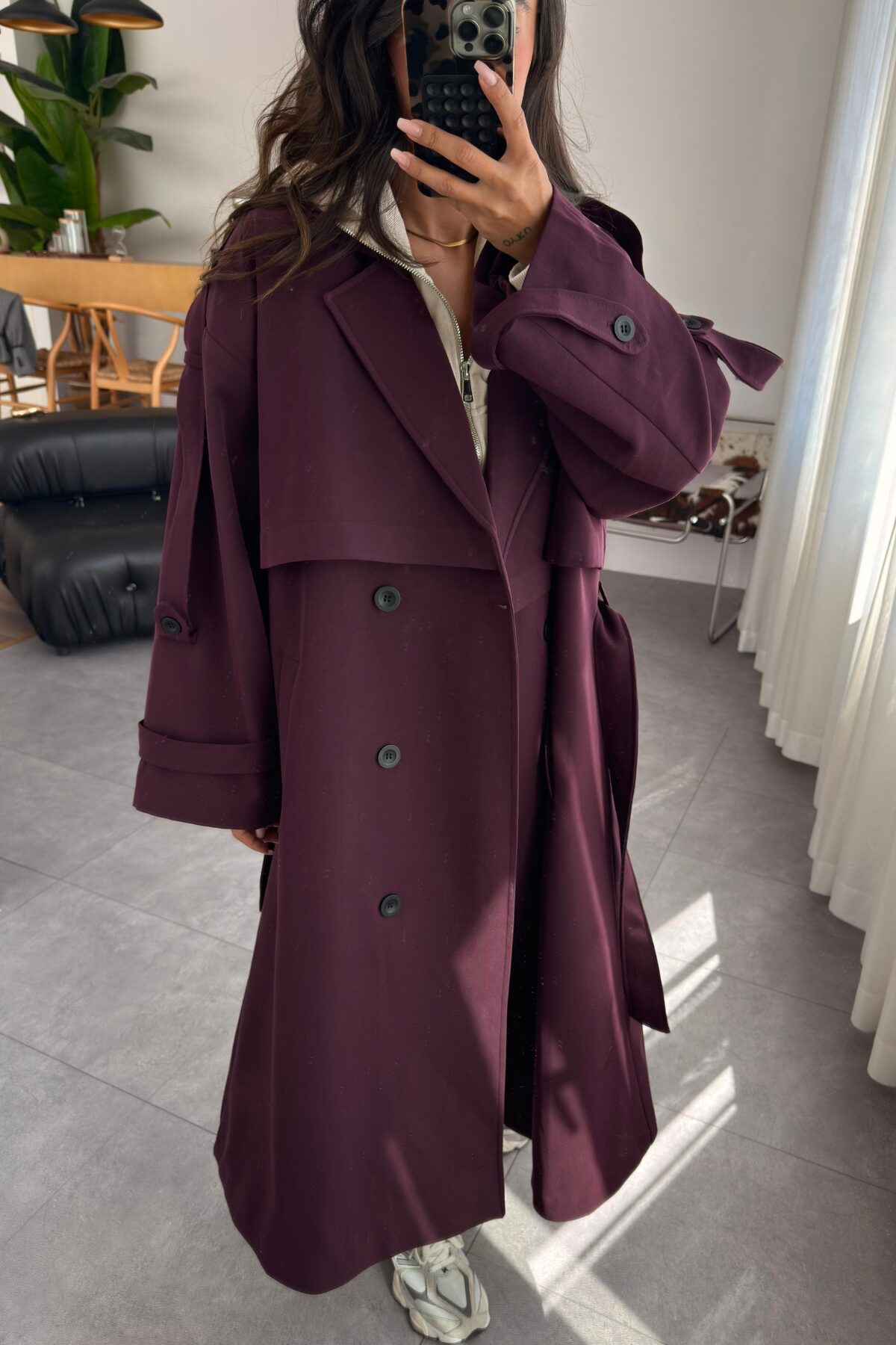 Poliviskon Premium Trençkot Mürdüm