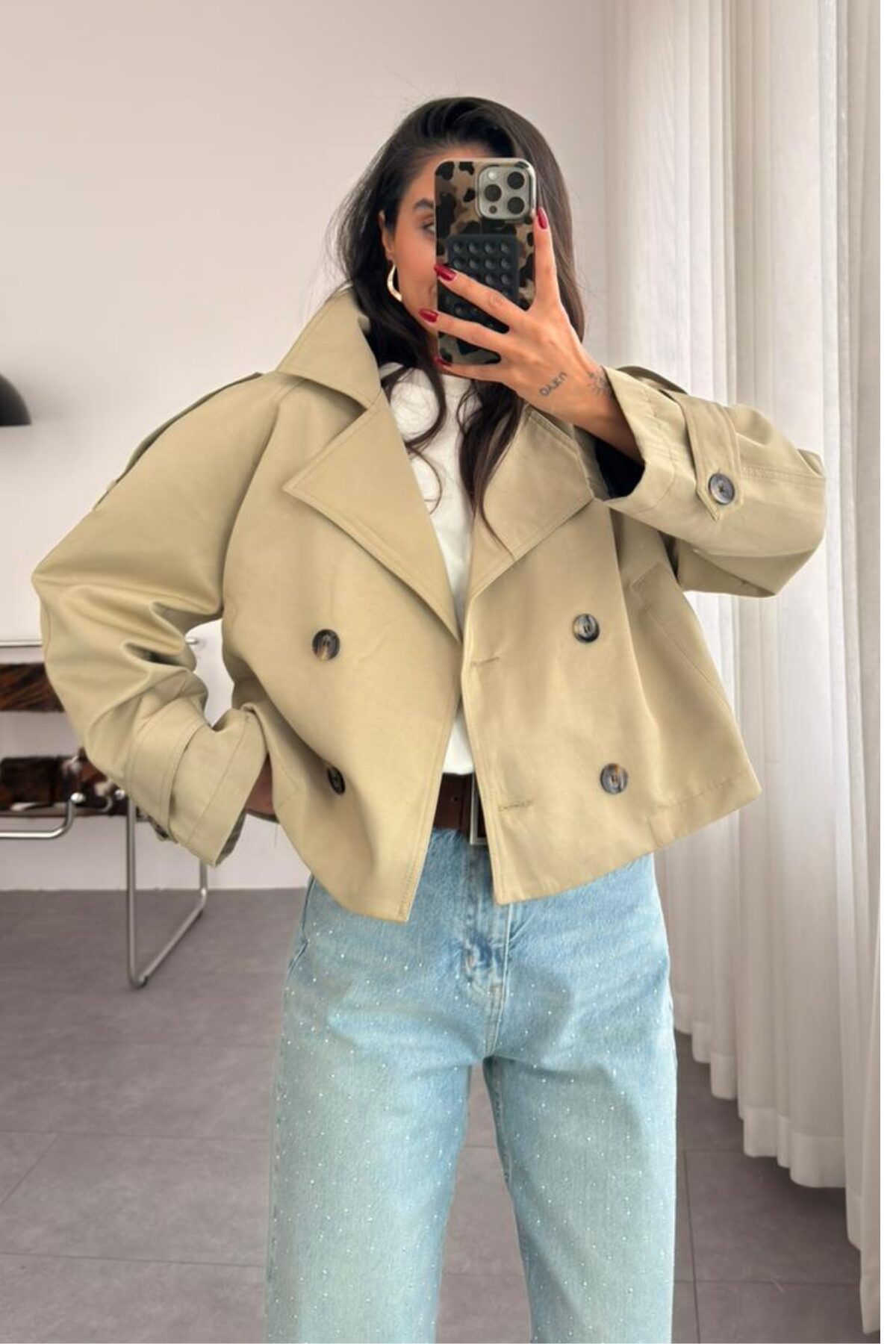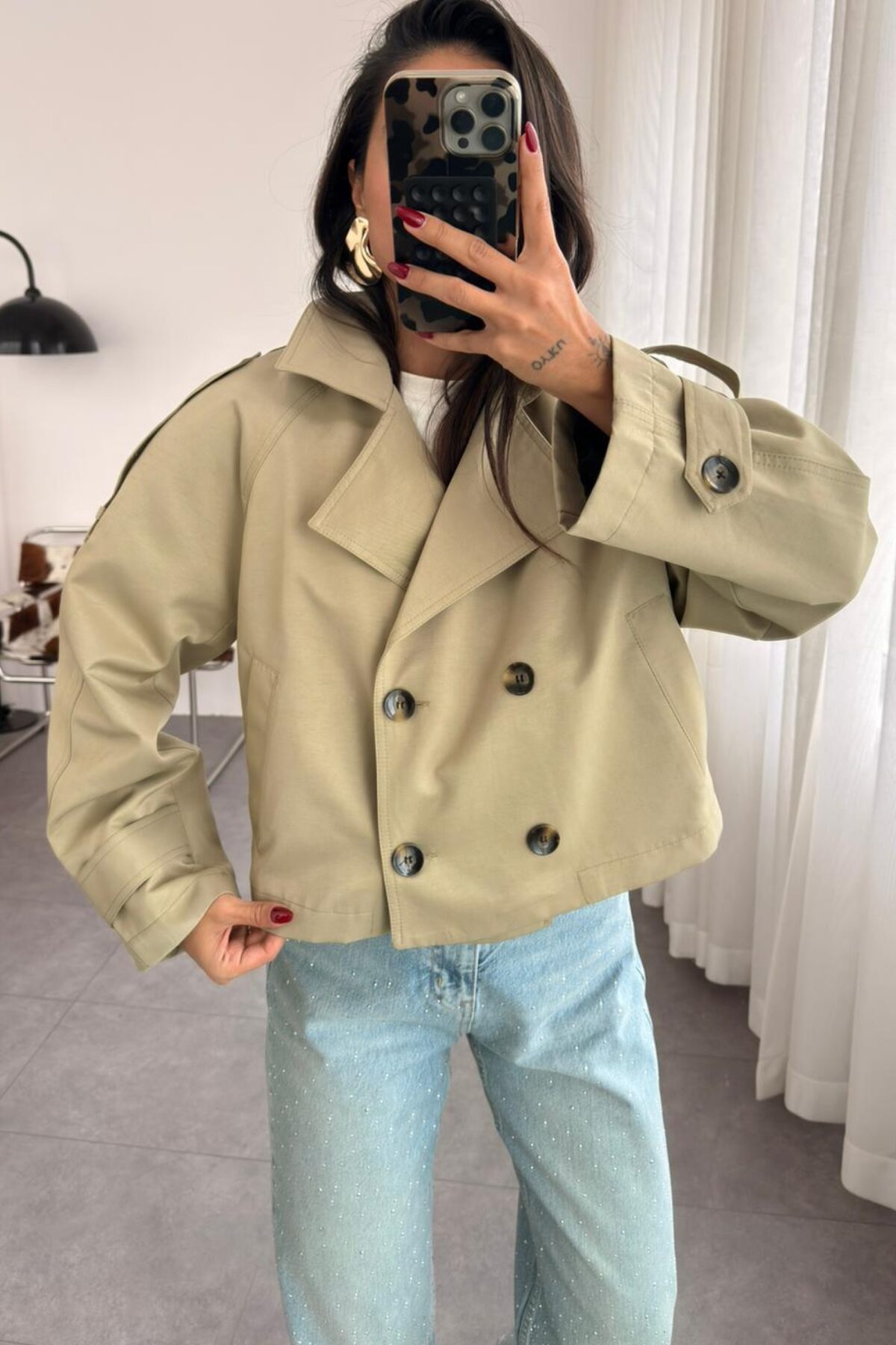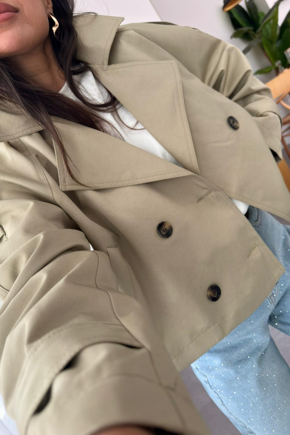 Veronica Cepli Kısa Trençkot Adaçayı Yeşil