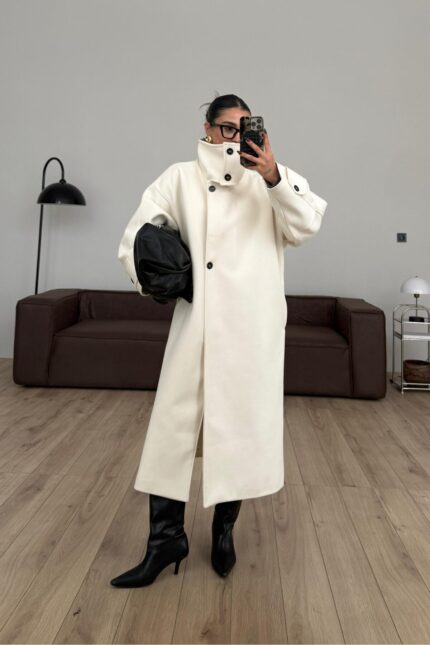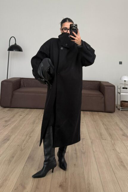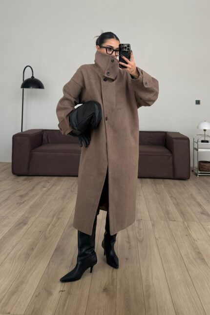 Trend Dik Yaka Kaşe Kaban Antrasit