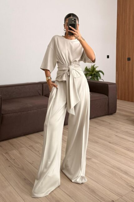 Beli Kuşak Bağlamalı Modal Takım Taş