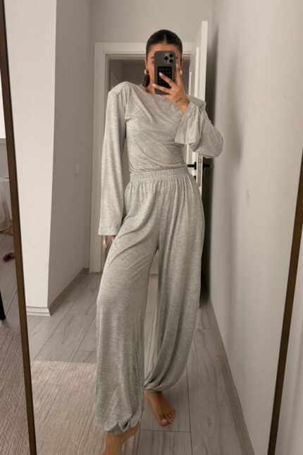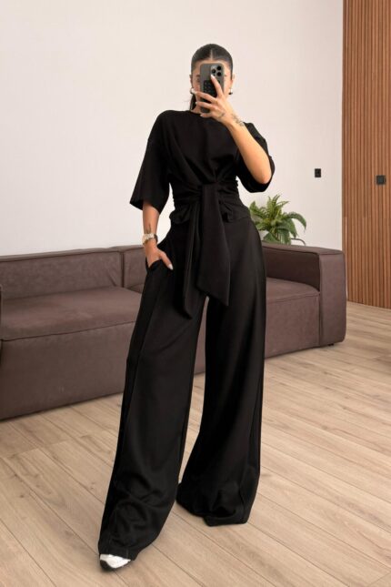 Beli Kuşak Bağlamalı Modal Takım Siyah