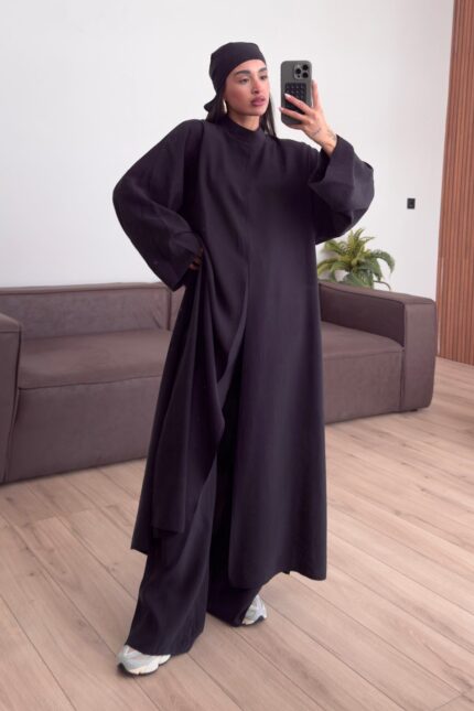 Tasarım Tunik Şallı Takım Siyah