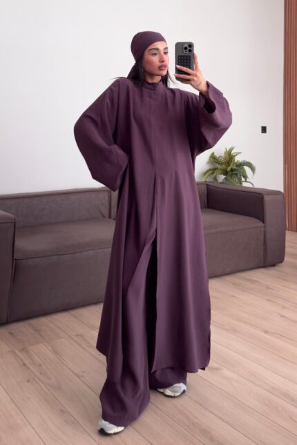 Tasarım Tunik Şallı Takım Mürdüm