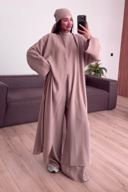 Tasarım Tunik Şallı Takım Kahverengi