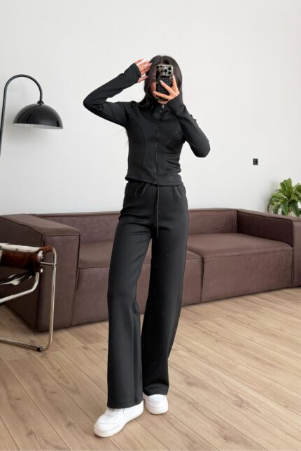Dalgıç Kumaş Fermuarlı Eşofman Takım Siyah