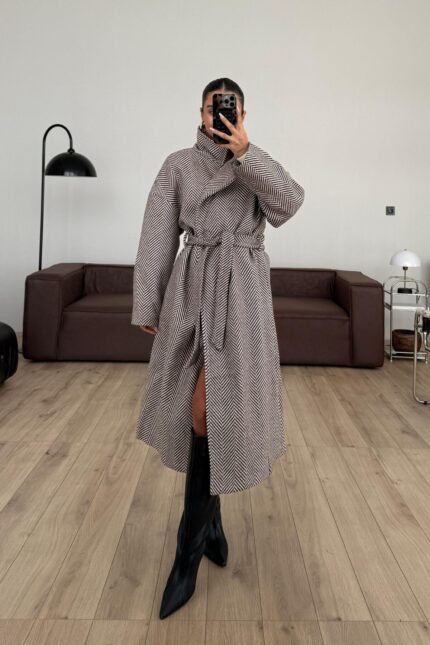 Trend Büzgülü Etek Ceket Takım Acı Kahve