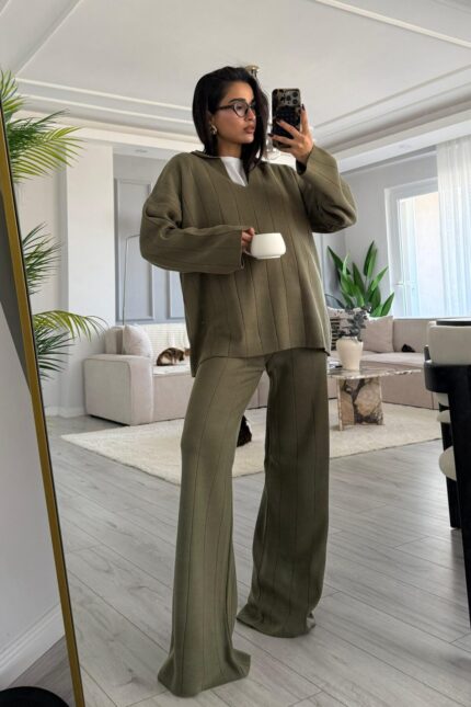 Kapşonlu Triko Hırka Pantolon Takım Antrasit
