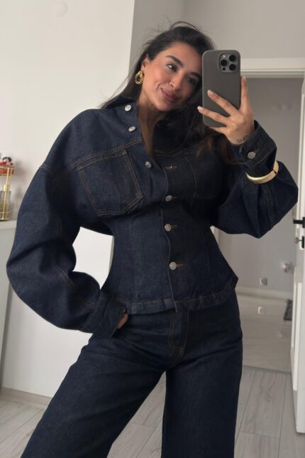 Leroy Çıtçıtlı Fermuarlı Denim Ceket Lacivert
