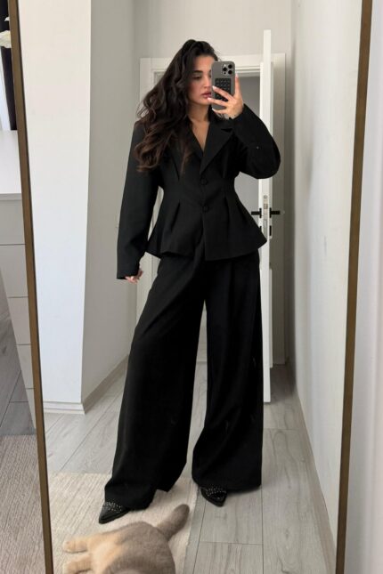 Nita Belden oturtmalı Ceket Pantolon Takım Siyah