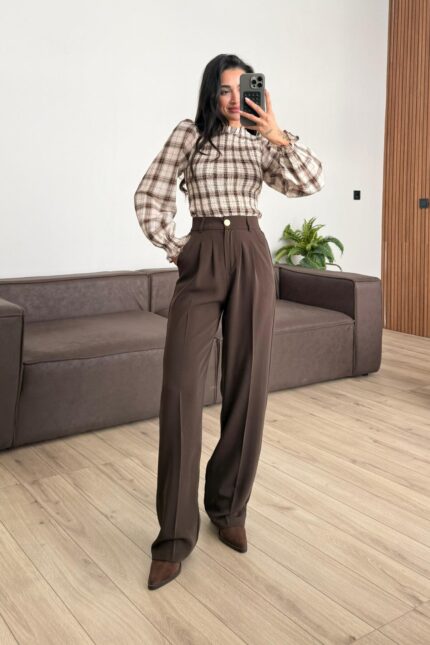 Pileli İçten Pervazlı Pantolon Kahveı