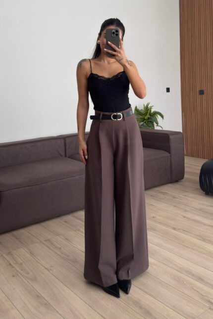 Gold Kemerli Palazzo Pantolon Kahverengi