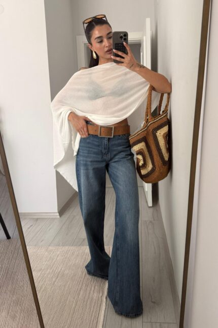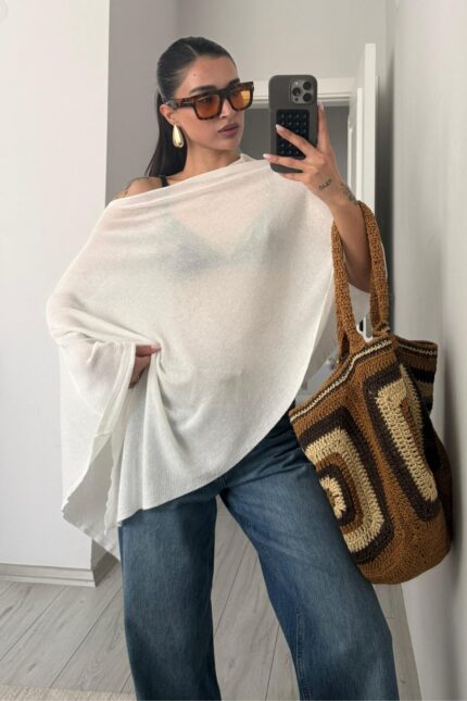 Dp Kayık Yaka Transparan Bluz Beyaz