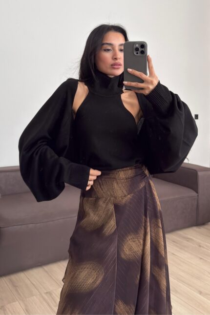 Bolerolu Boğazlı Sırtı Açık Bluz Siyah