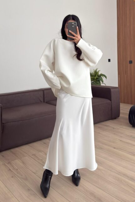 Dalgıç Kumaş İki Parçalı Bluz Beyaz
